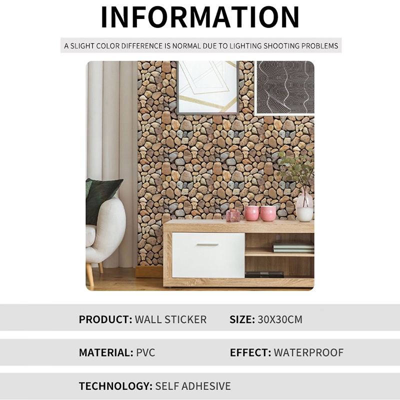 3D Wall Sticker Waterproof Self Adhesive PVC Pattern Wallpaper Living Room Bedroom TV Wall 30x30cm