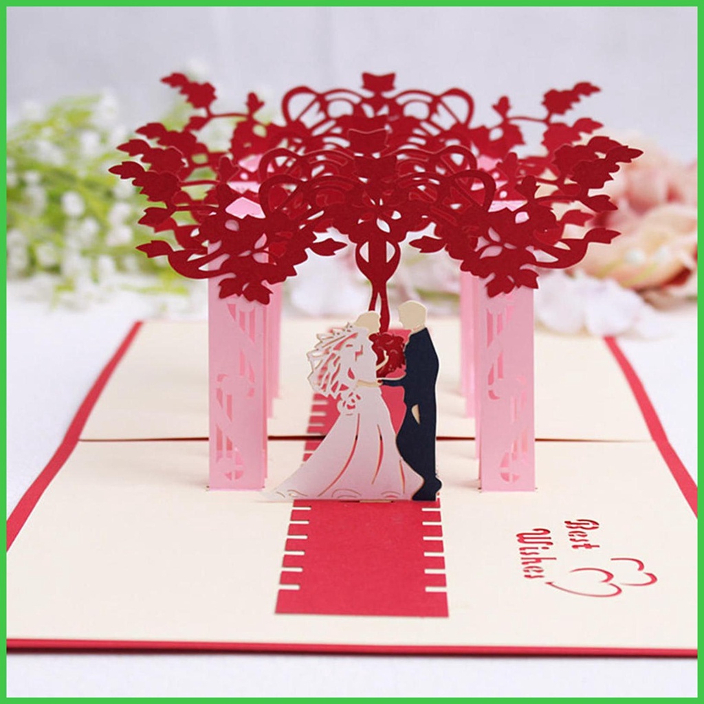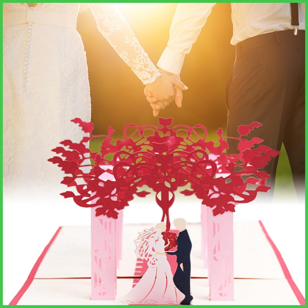 3D Wedding Card Greeting Large Pop Up Wedding Engagement Anniversary Cards For Invitation Pink Arches Red Card smbph