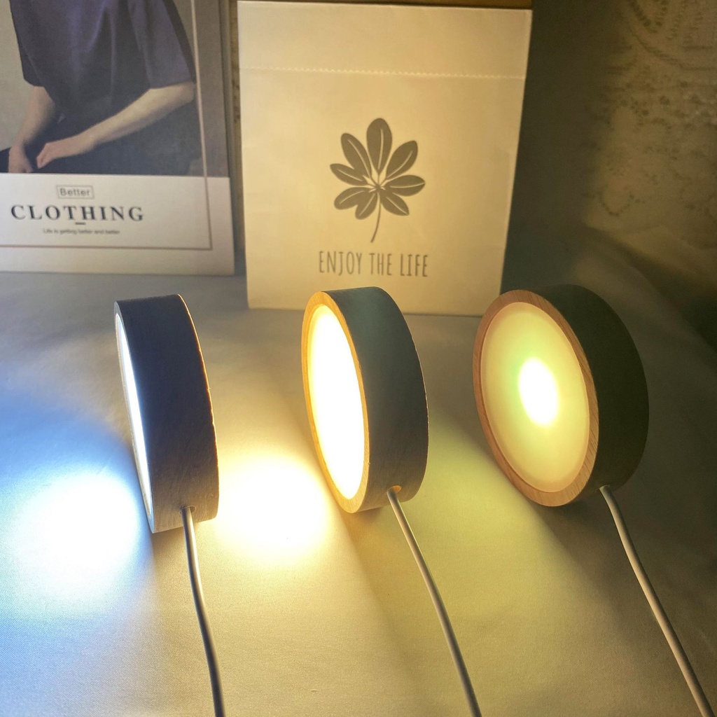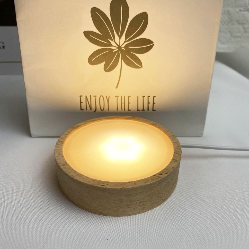 3D Wood LED Light Base Round Square Shape Wooden Display Stand For Crystal Glass