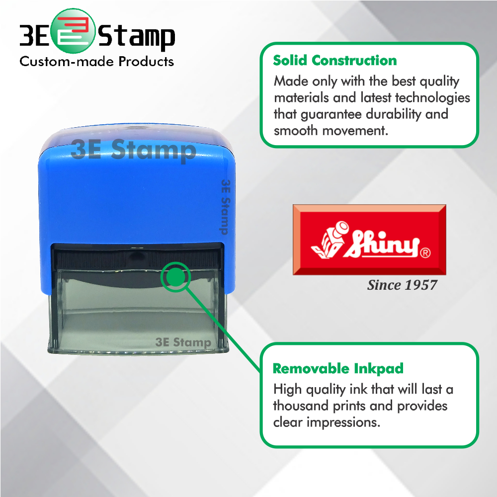 3E STAMP Shiny 844 / S844 / S-844 Self inking Stamp for Personalized Business Stamp