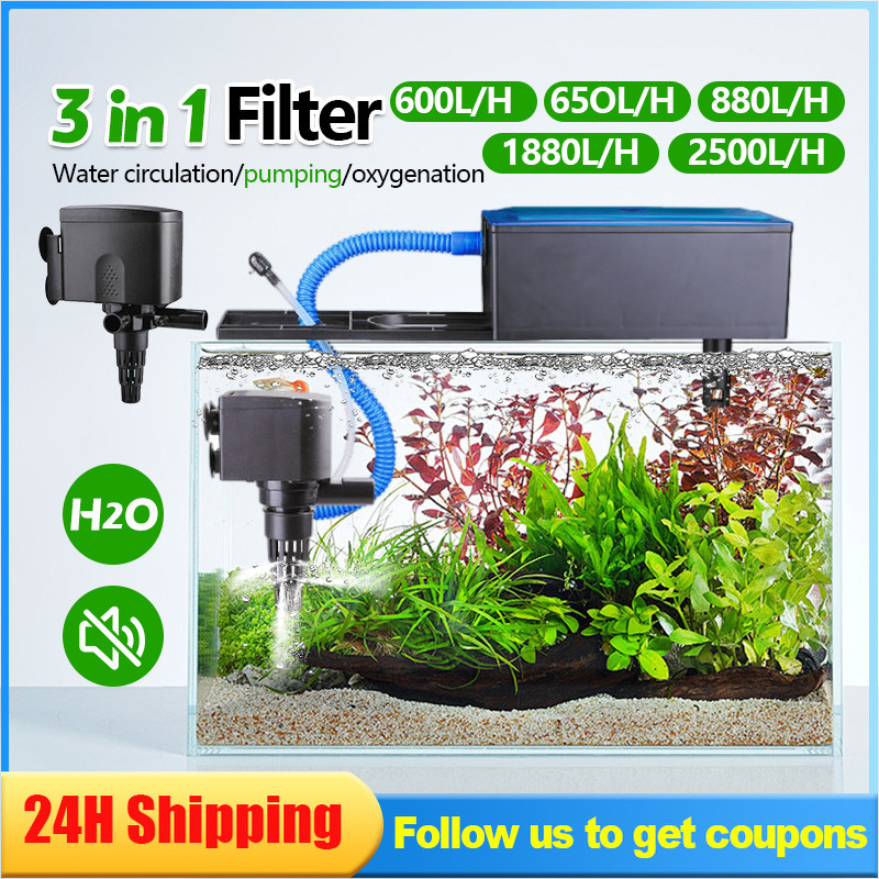 3In1 Fish Tank Submersible Pump Top Filter Air Oxygen Aerator Aquarium Top Filter