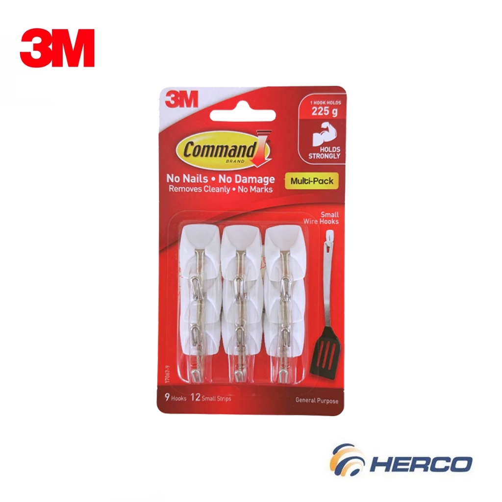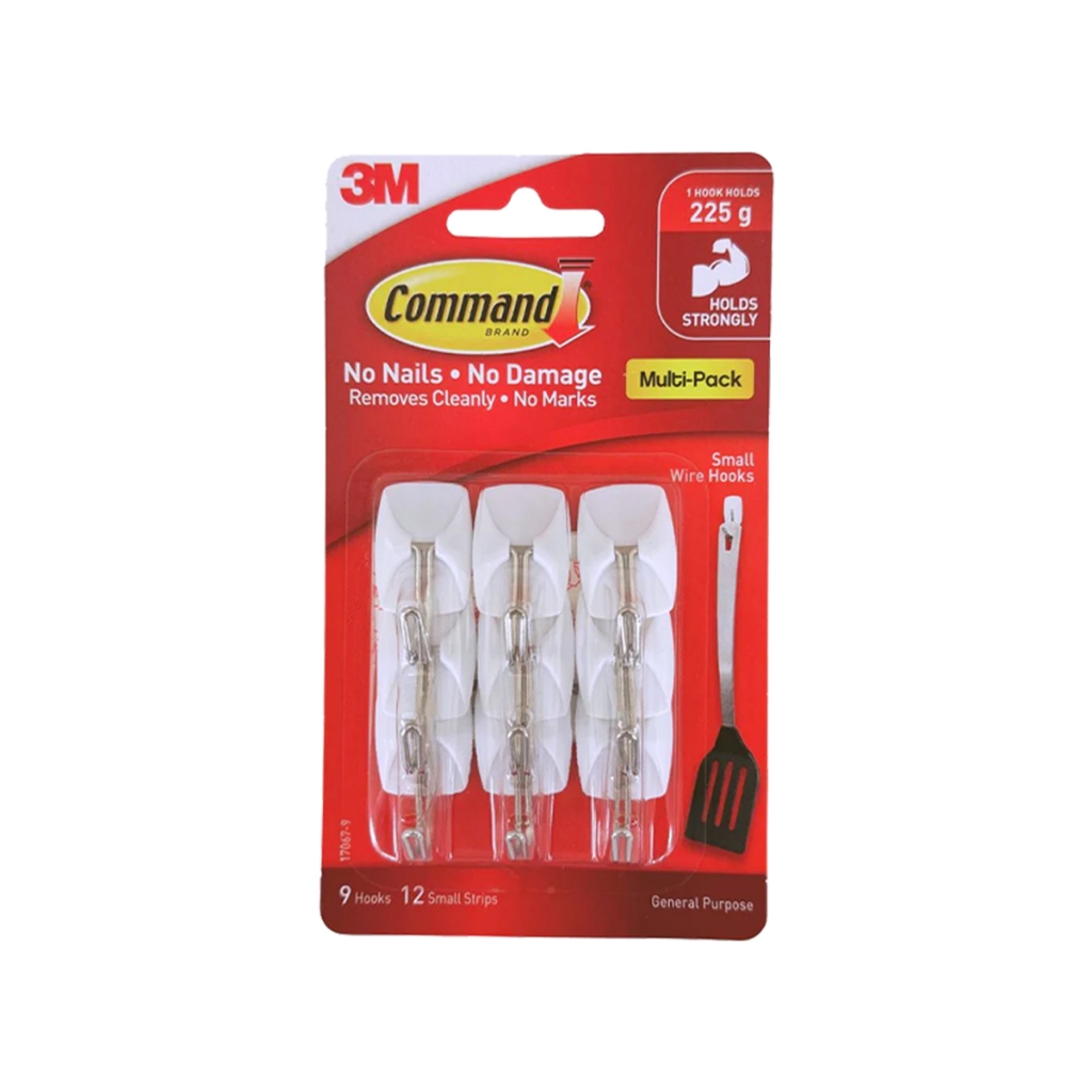 3M Command 17067-9 Small Wire Hooks 9 hooks + 12 strips Holds Up to 225g