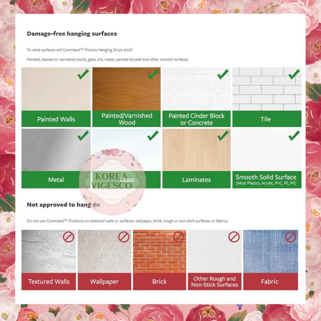 3M Command Picture Hanging Strips / No Surface Damage / Velcro Hanging