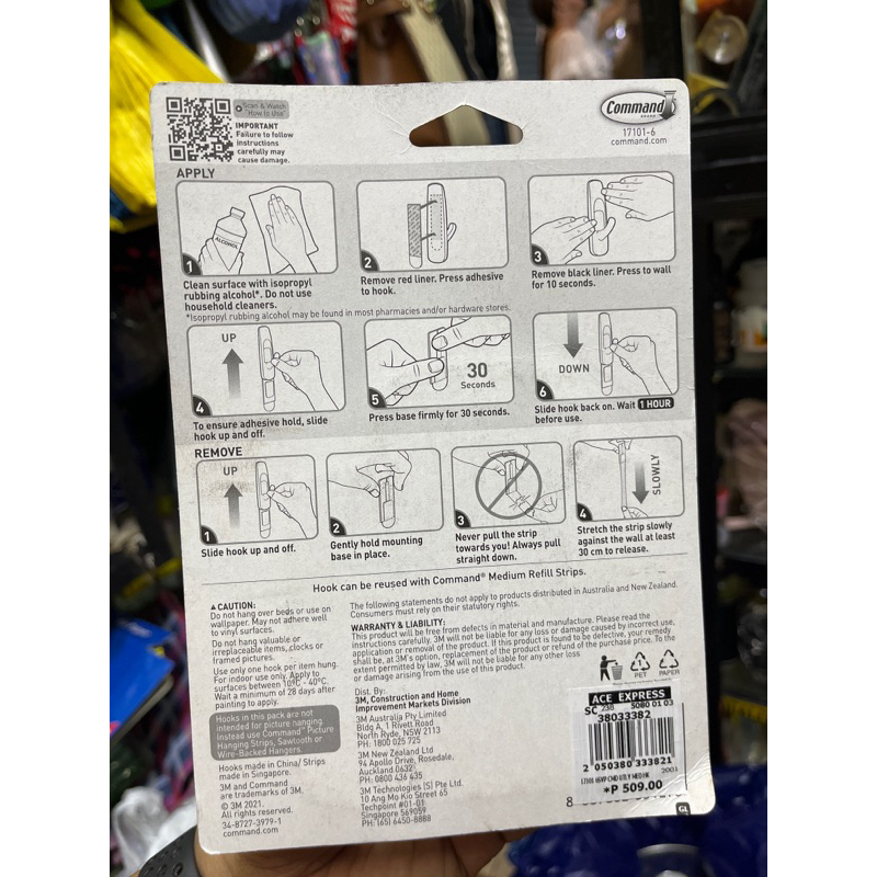 3M HOOKS COMMAND 4.4kg/ 1.3kg No Nails . No Damage
