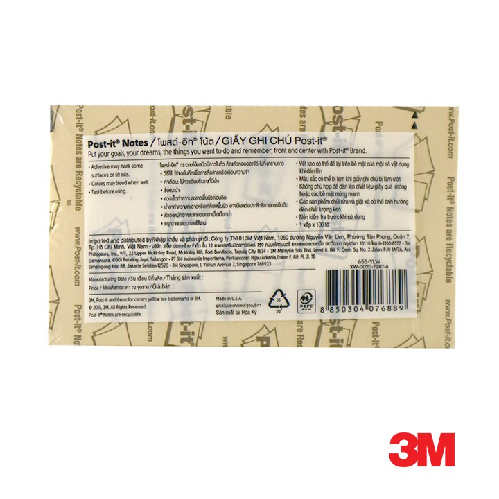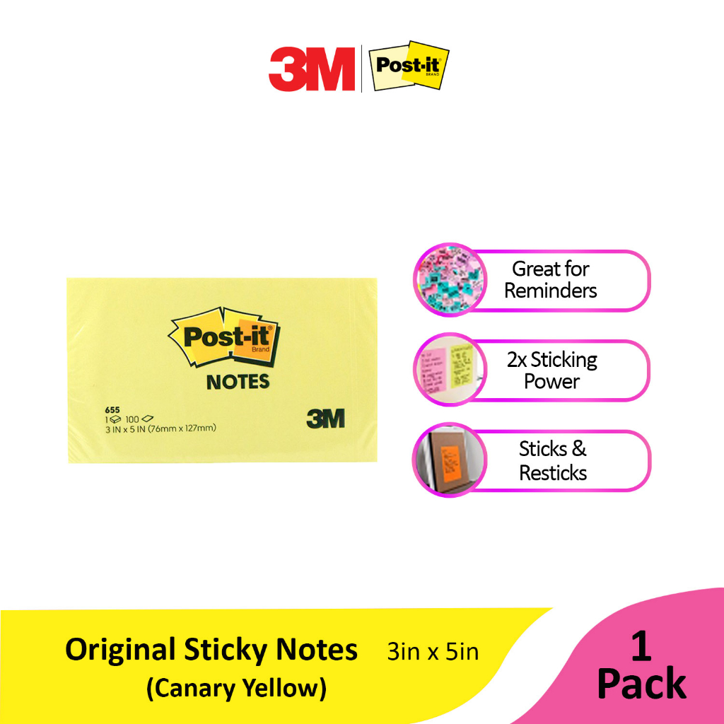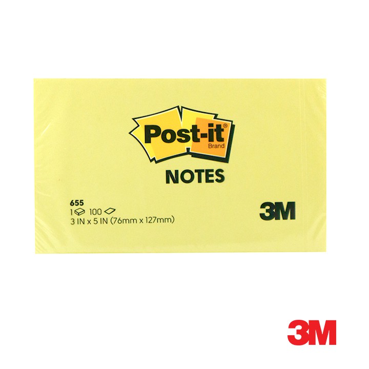 3M Post-it Notes, 3in x 5in 100 sheets 655 Canary Yellow [MP655]