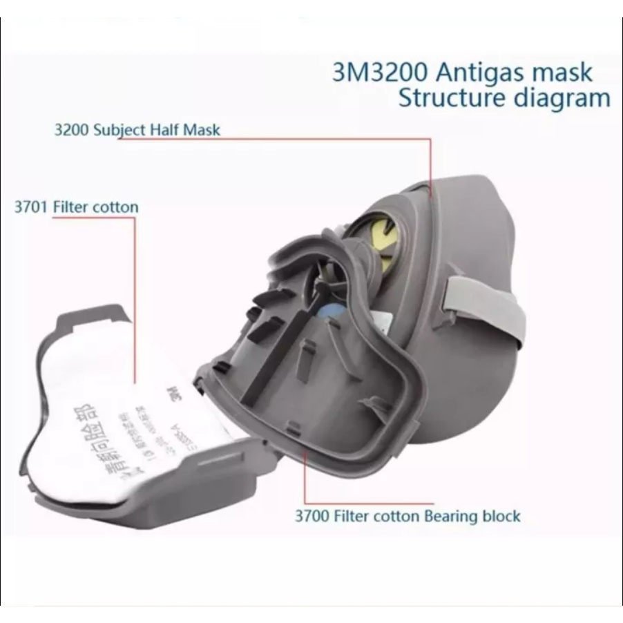 3M REUSABLE HALF FACE MASK RESPIRATOR 3200 w/ 3700 FILTER COVER (PIECE)
