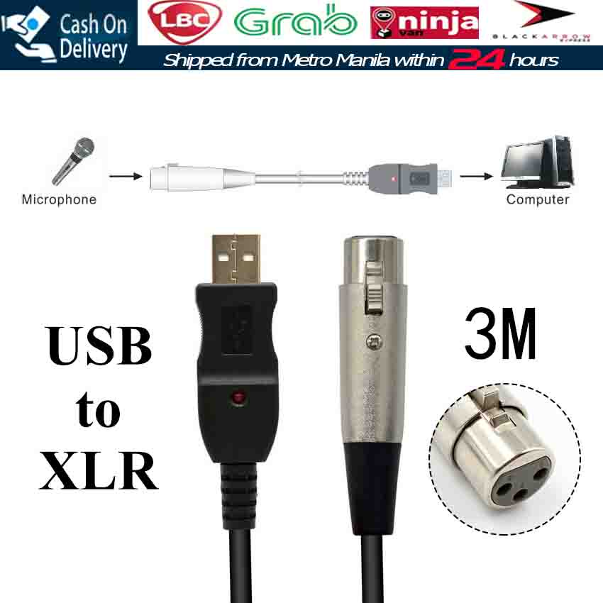 3M USB to XLR Female 3 Pin Microphone MIC Studio Audio Link Cable Cord Adapter Vocal Recorder Male