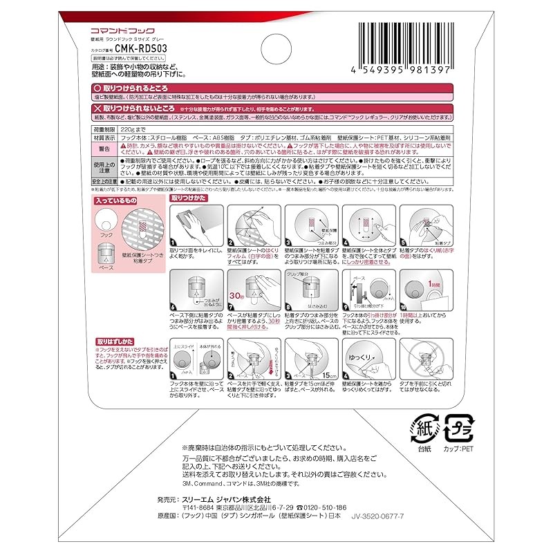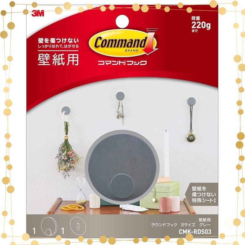 3M Wallpaper Hooks Removable Adhesive Command Round S Gray CMK-RDS03