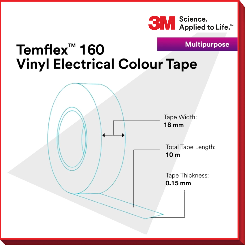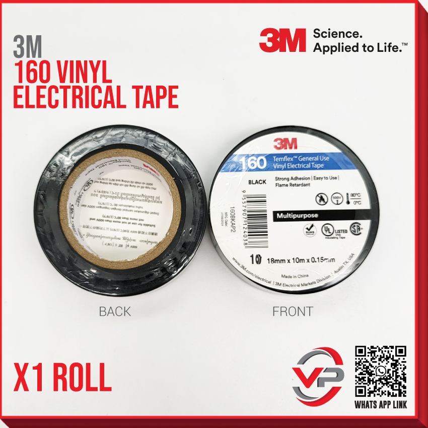 3MTM TEMFLEX 160 ELECTRICAL TAPE/COLOR VINYL TAPE/PVC INSULATION WIRE TAPE 1 ROLL 10 ROLL BLACK 18MM x 10M