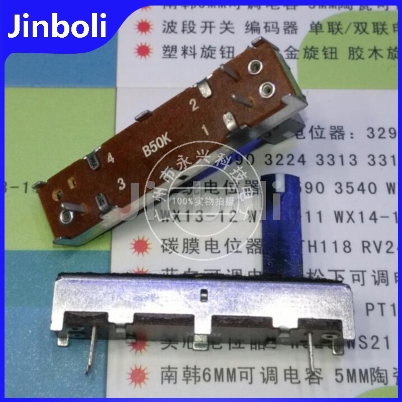 3PCS 3.5CM Straight Slide Potentiometer 35MM Mixer Fader B50K With Midpoint 3 Pin Sliding Pusher Handle 15MM