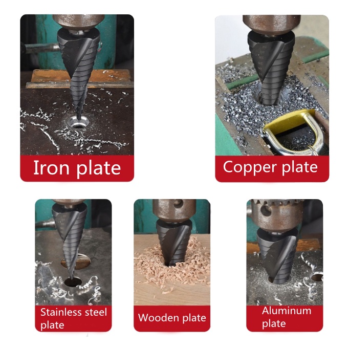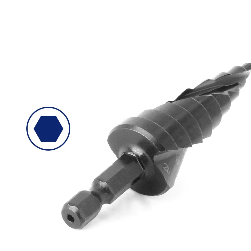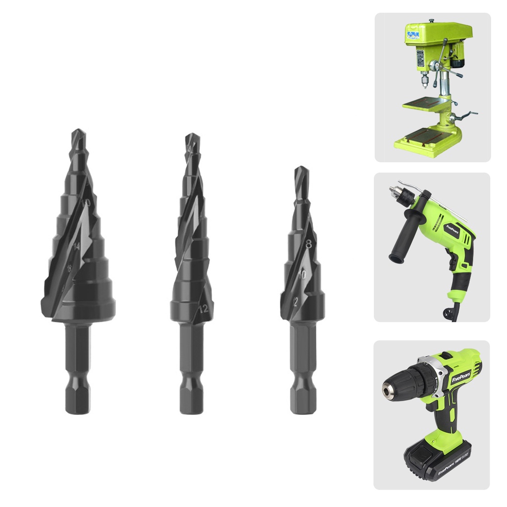 3PCS 4-20mm Step Drill Bit for iron plate, M35 HSS-Co TiAlN Coated Step Drill 1/4" Hex Shank