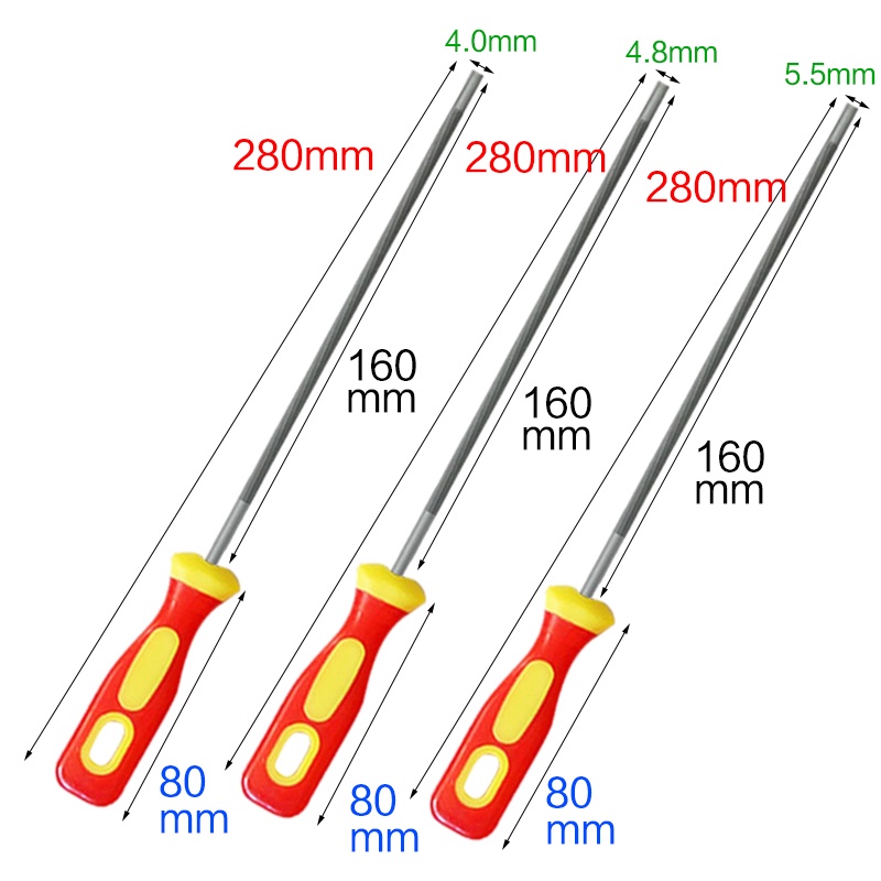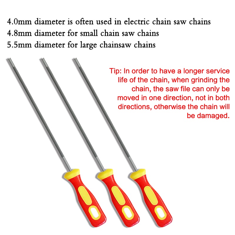 3PCS Chainsaw Chain File Round Handle Saw Chain File Sharpener For Woodwork Chainsaw File4/4.8/5.5mm