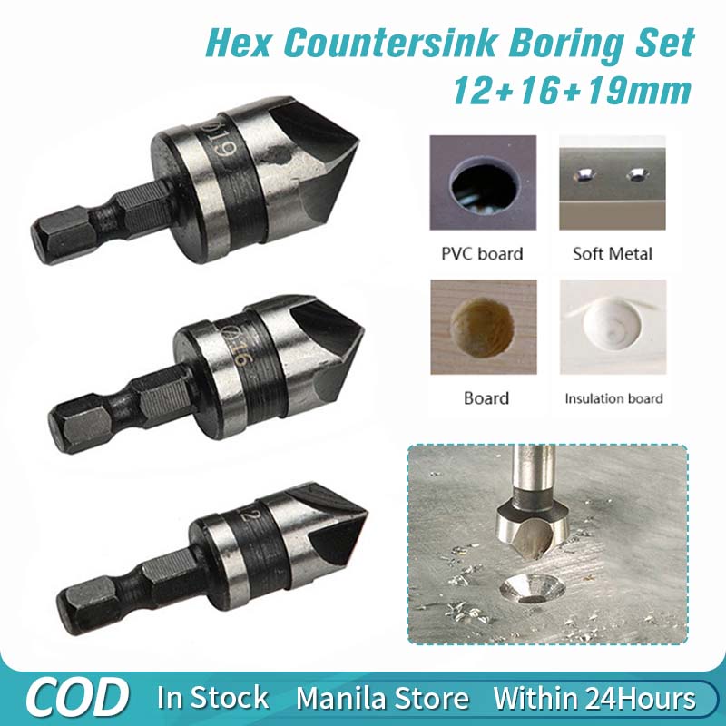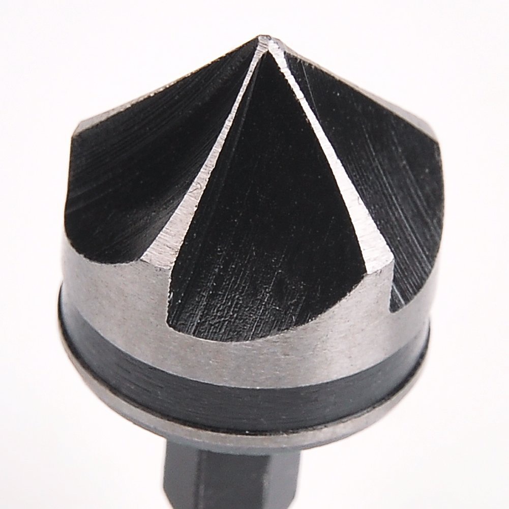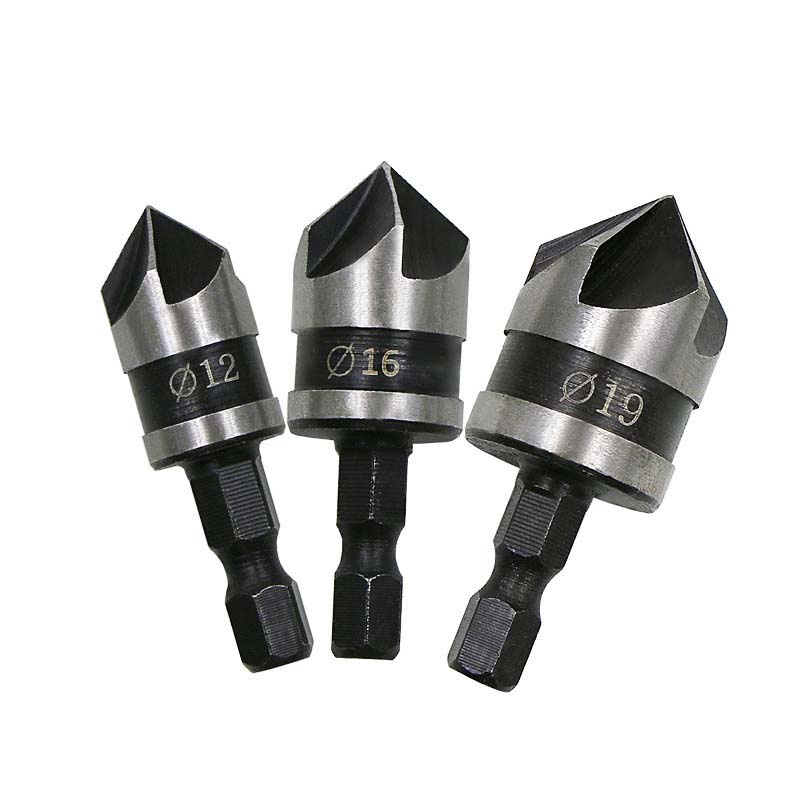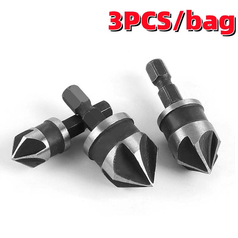 3PCS Countersink Drill Bit Set Hex Shank 5 Flute Countersink 90 Degree Center Punch Tool