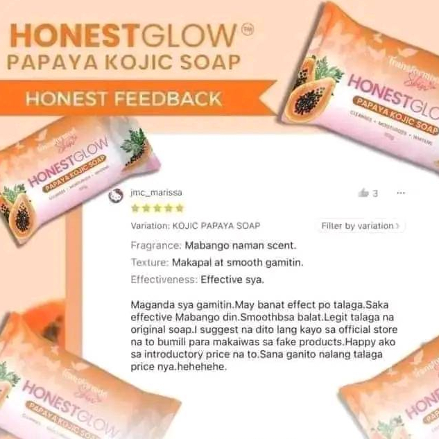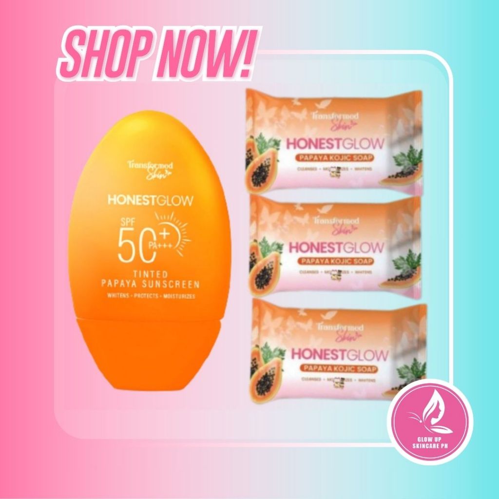 3PCS Effective Honest Glow Papaya Kojic Soap 70grams and Honestglow Kojic Tinted Sunscreen