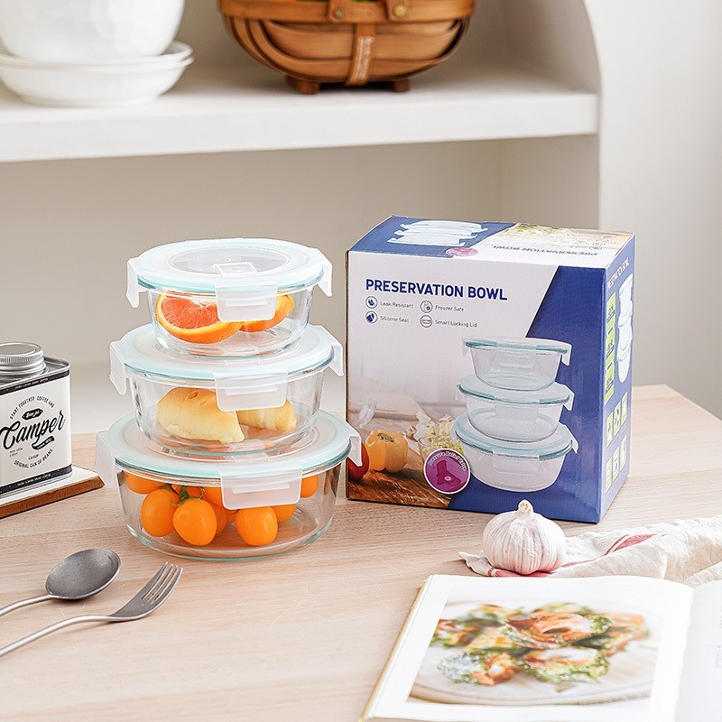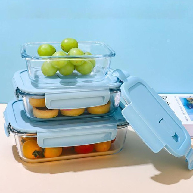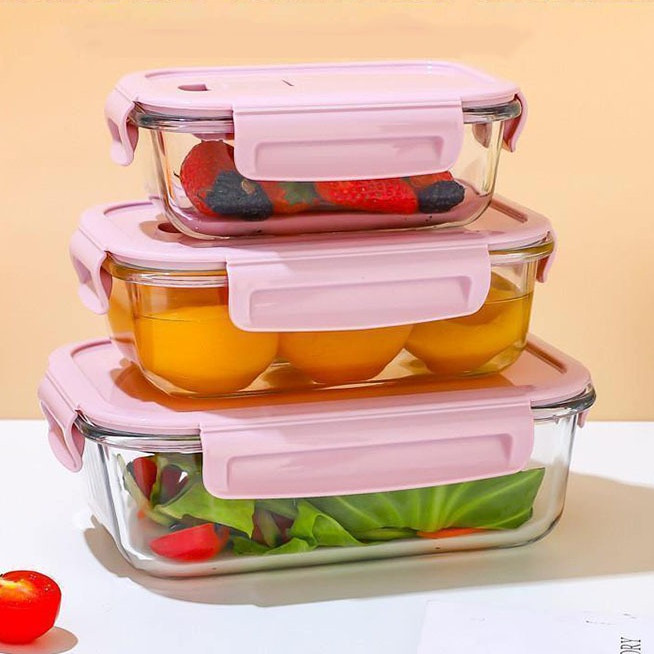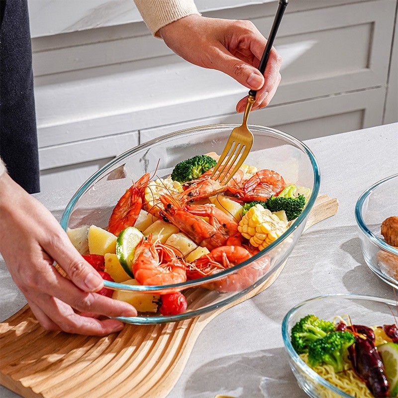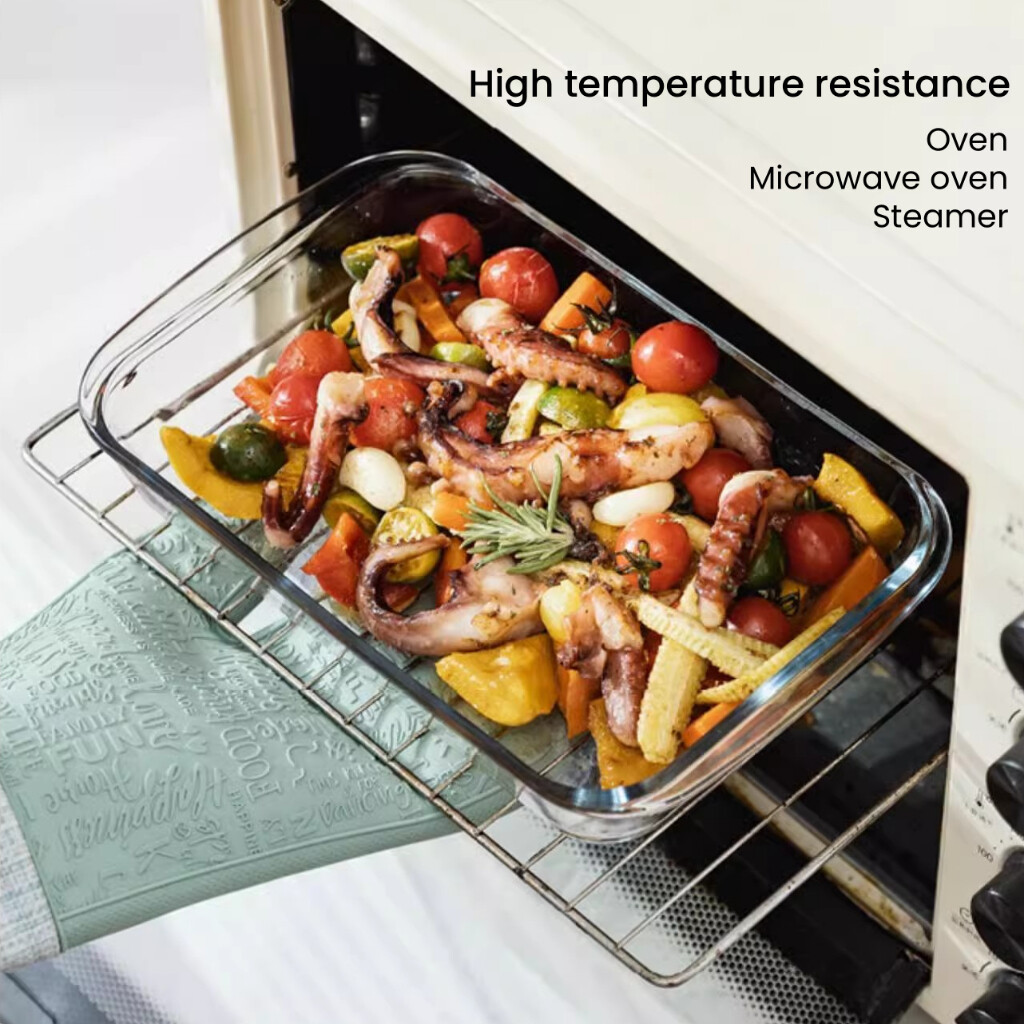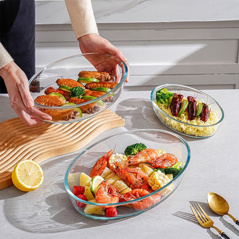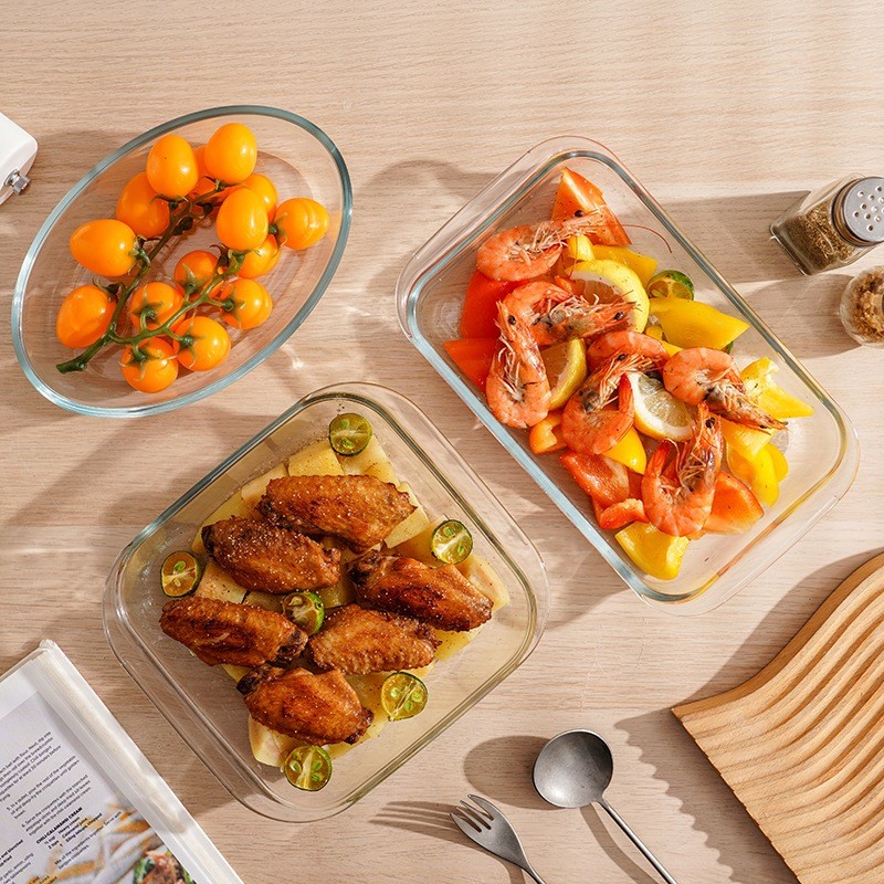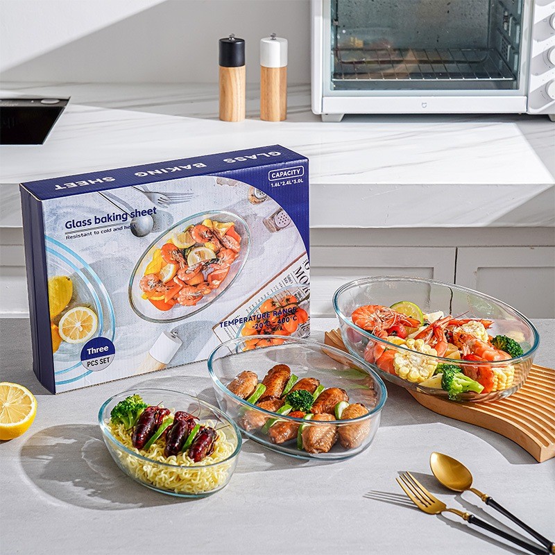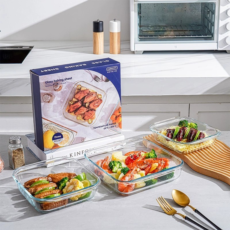 3PCS Glass Baking Tray Oven Bakenware Microwave Safe Rect Glass Baking Dish Salad Bowl Lunch Box