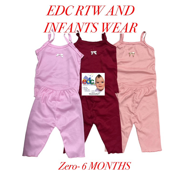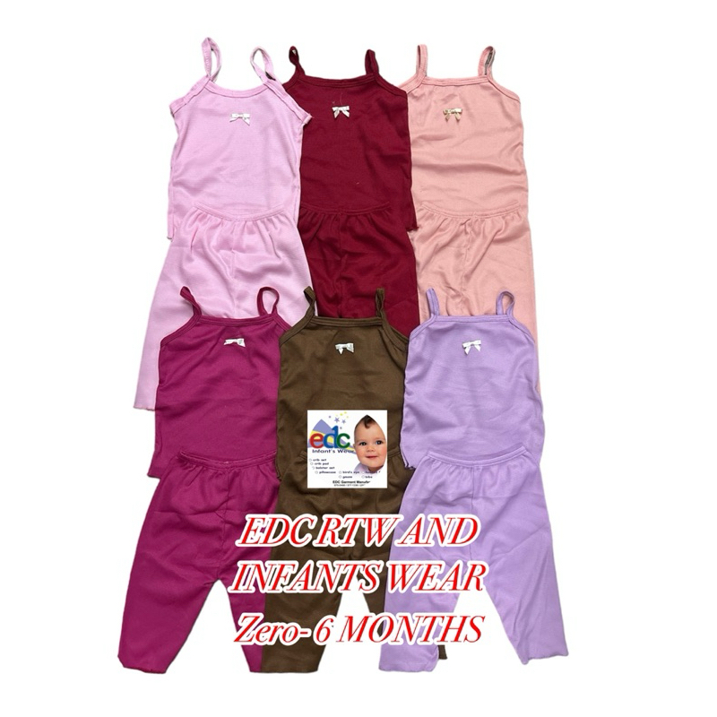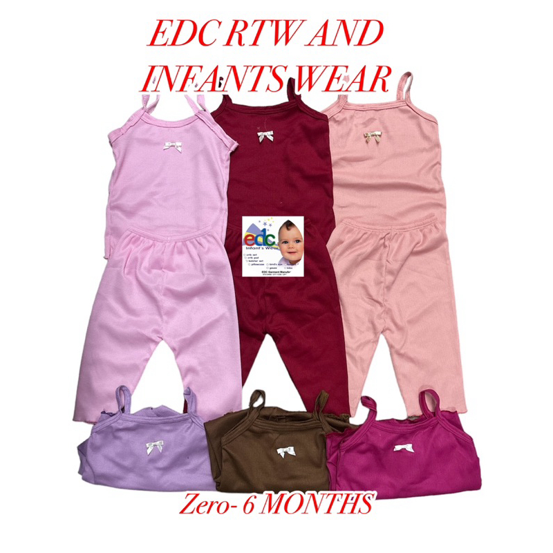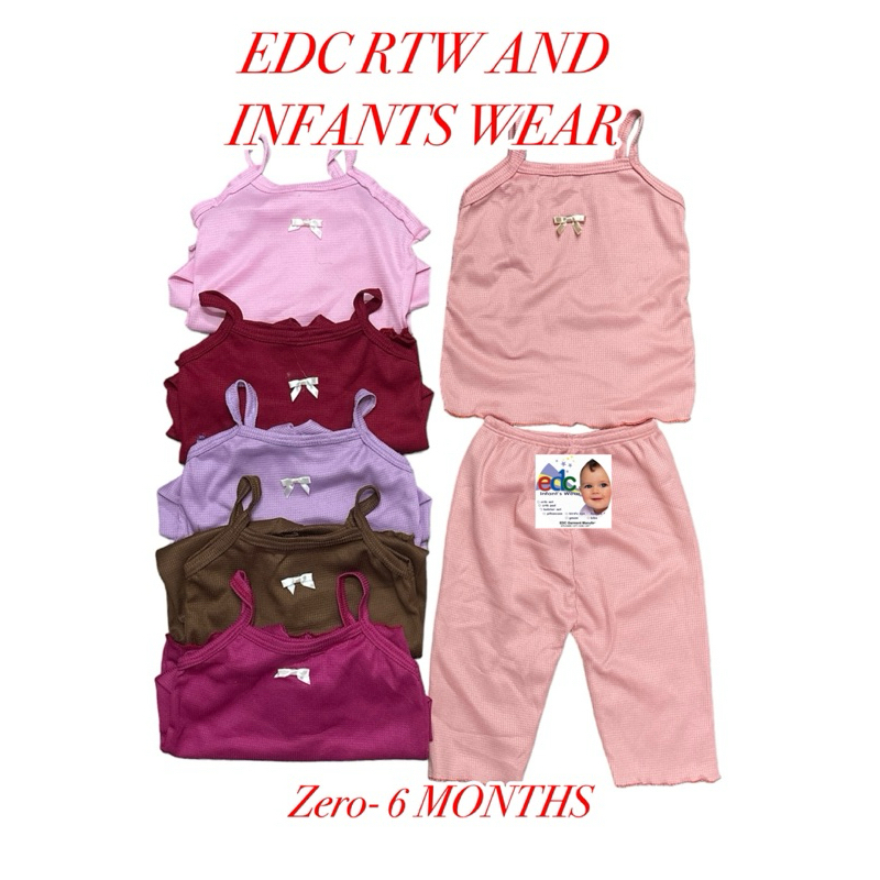 3PCS OR 6PCS TERNO GIRL PAMBAHAY WAFFLE KNITTED PAIR SPAGHETTI AND PANTS WITH RIBBON
