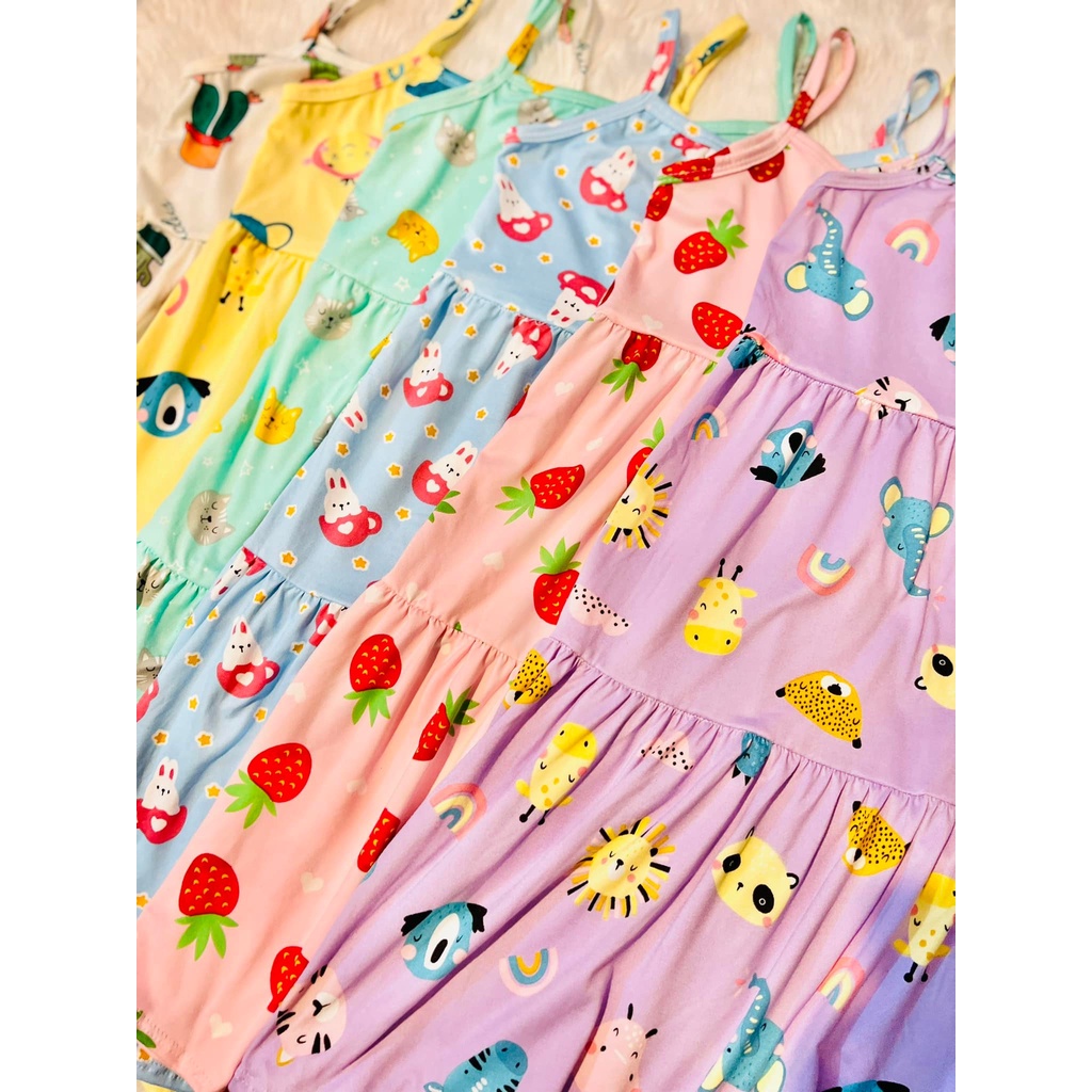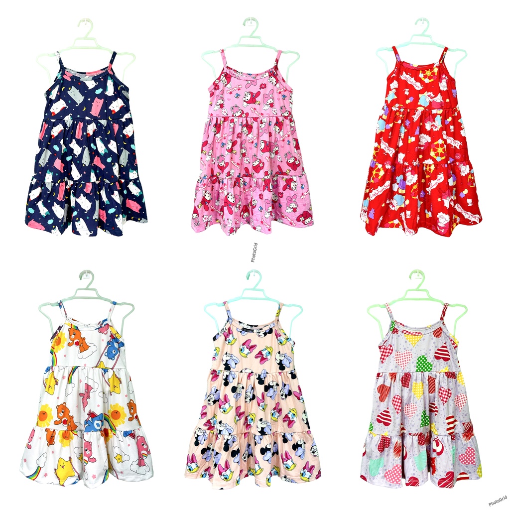 3PCS Plain Printed Kids Dress 0-9y/o Baby Toddler Teen Girls String Dress Casual Wear Daster Dress