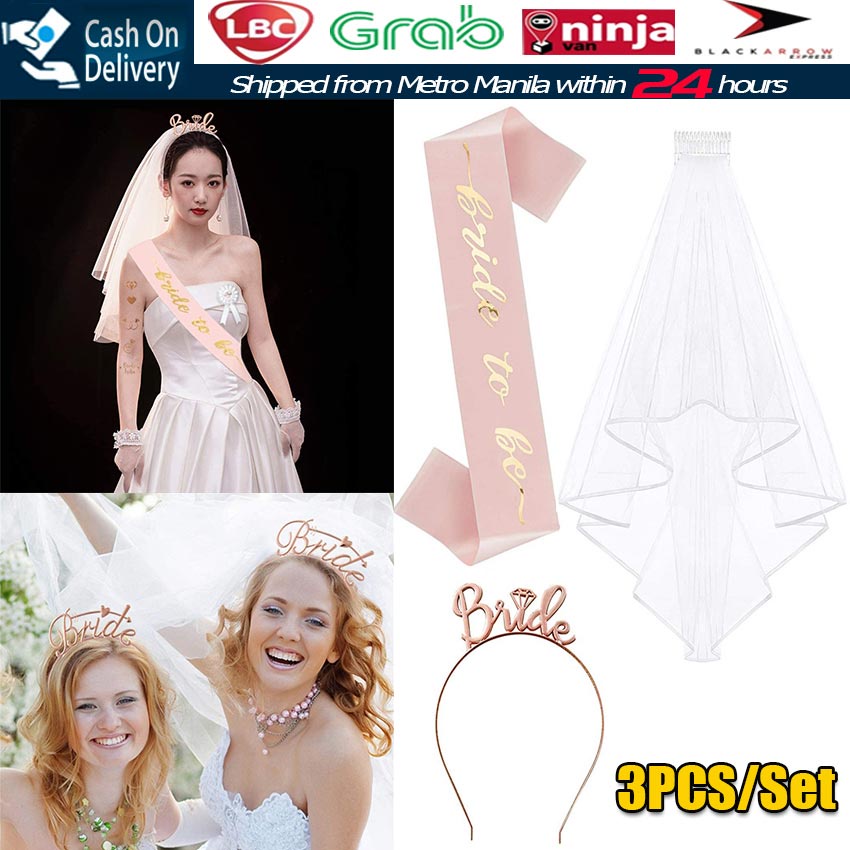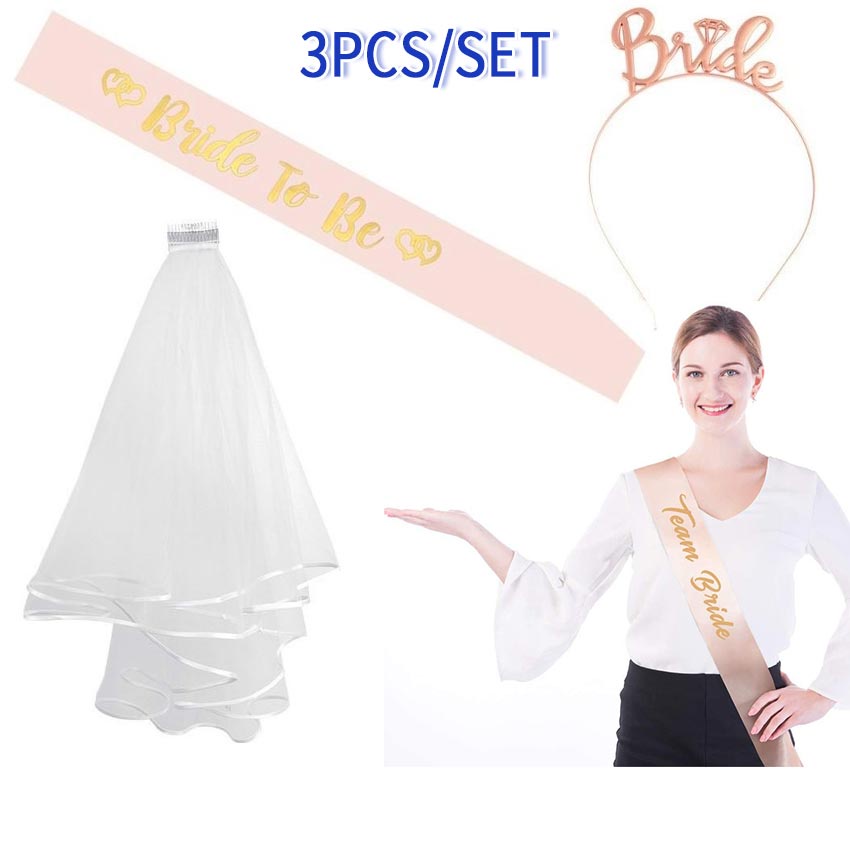 3PCS/Set Bride to Be Satin Ribbon Sash Bridal Shower Bachelorette Party Decor Wedding Accessories