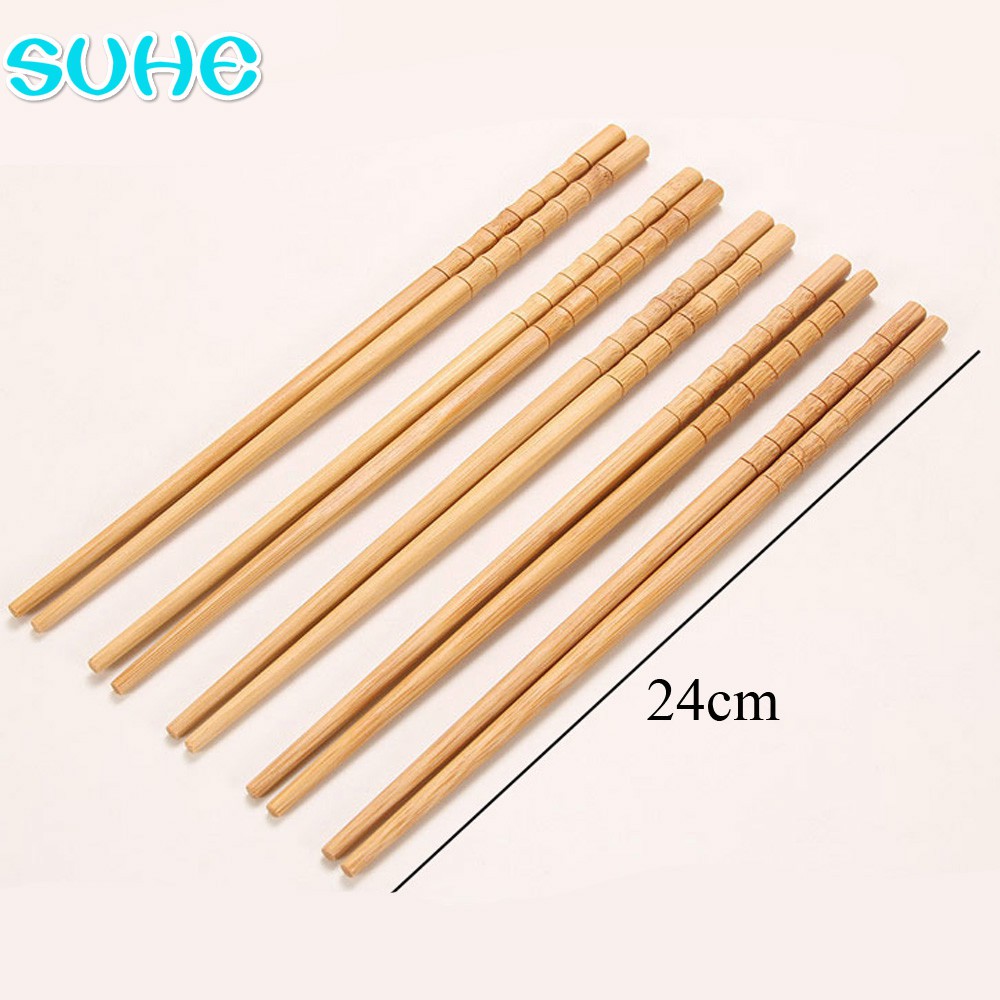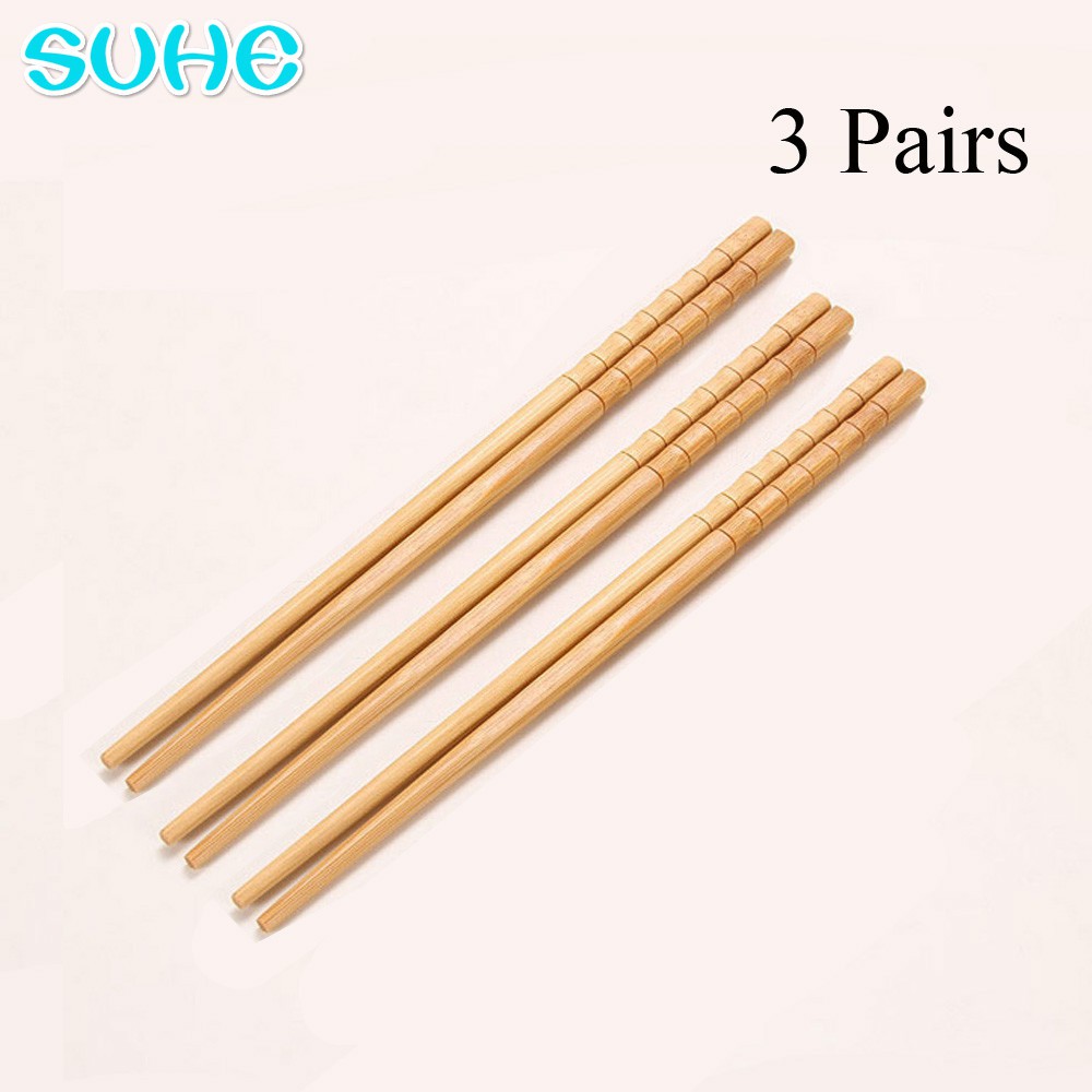 3Pairs Handmade Natural Bamboo Wood Chopsticks Reusable Chopsticks