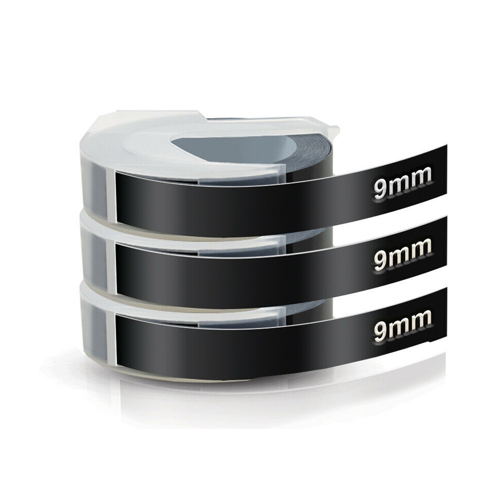 3Pcs 3D Plastic Embossing Label Tape Refill 9mm x 3m Black, Compatible for MOTEX Embossing Label Maker E-101 E-303 DYMO 12965 1880 1610 1540 Embosser Label Writer