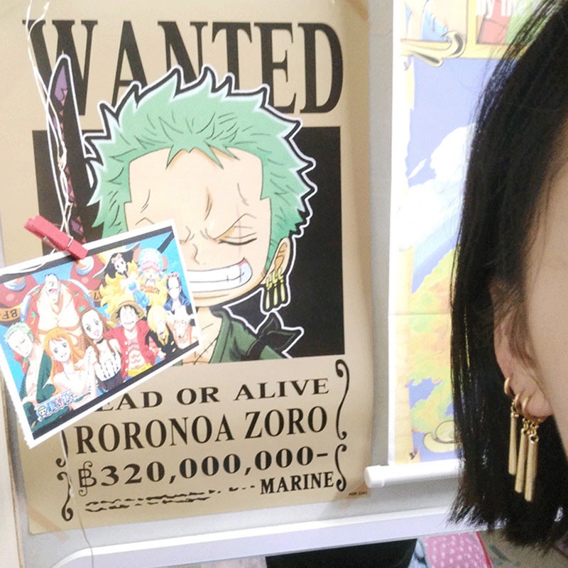 3Pcs Anime One Piece Roronoa Zoro Four-Type Fashion Earrings Ear Clip Studs Hook Cos Prop