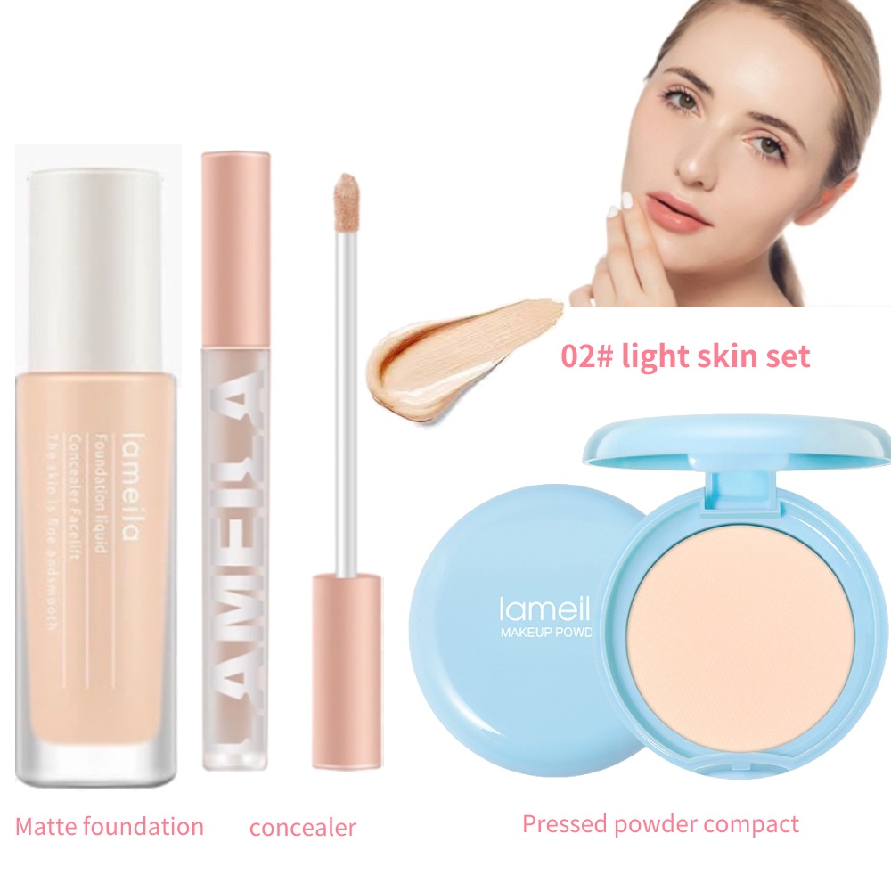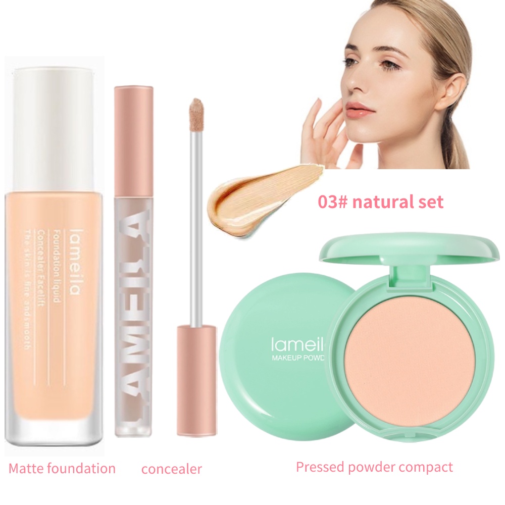 3Pcs Face Base Makeup Set Daily Matte Natural Cosmetics Kit Longwear Full Cover Oil Control 3colors