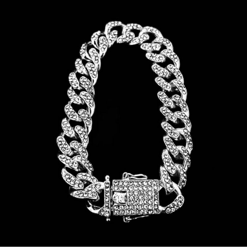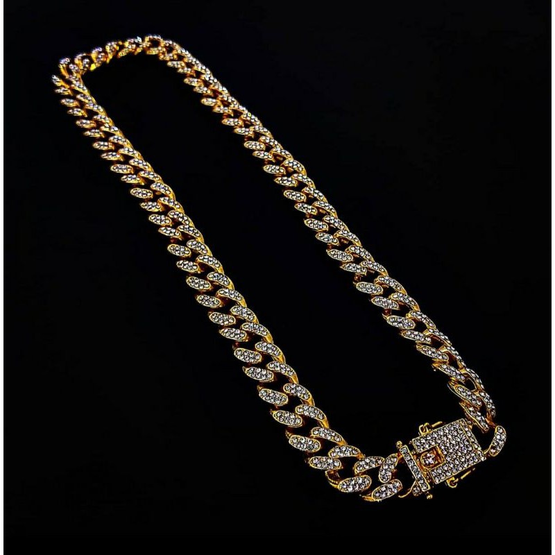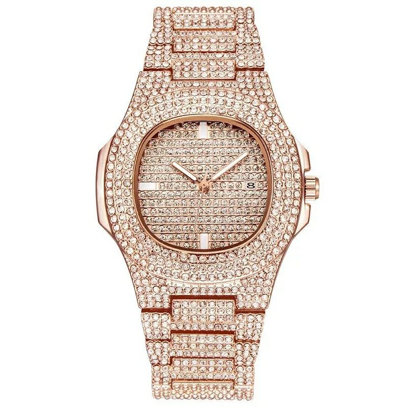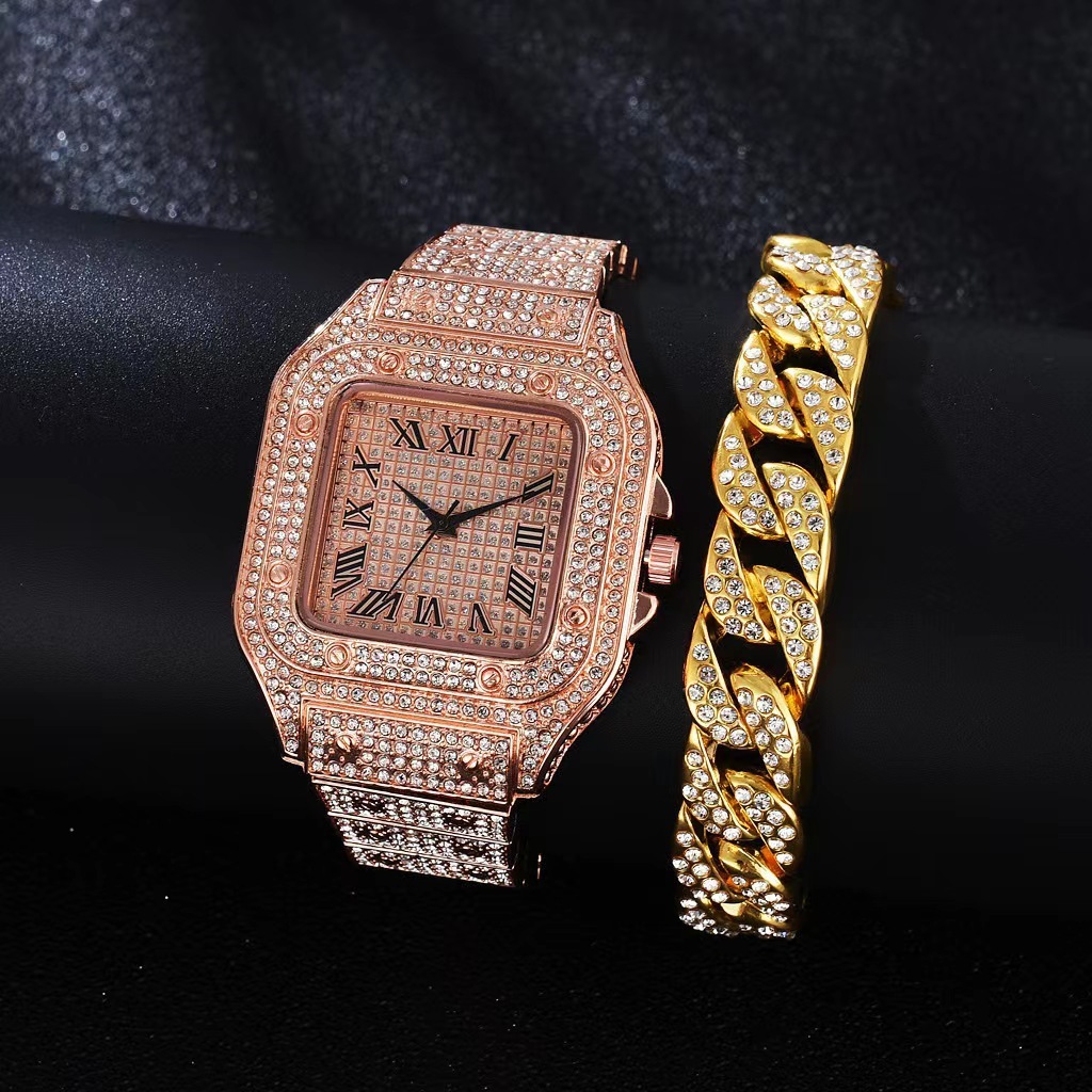 3Pcs Necklace+Watch+Bracelet Hip Hop Miami Cuban Chain Iced Out Paved Rhinestones Bling Rapper Men Gold Color Jewelry