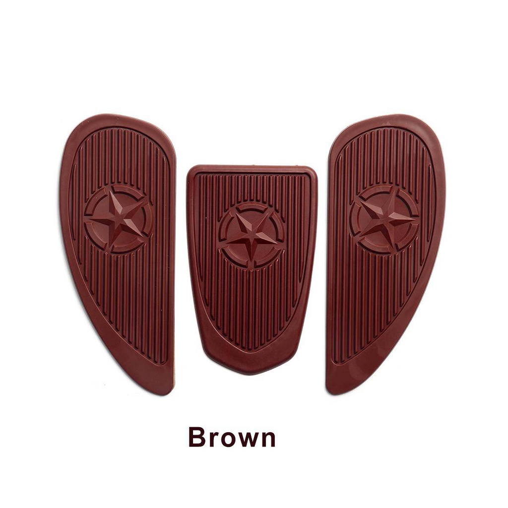 3Pcs Retro Motorcycle Cafe Racer Gas Fuel Tank Rubber Sticker Protector Side Tank Knee Grip Pad Star Grip Decal