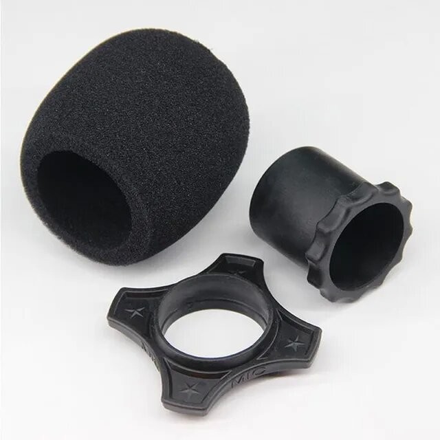 3Pcs/Set Black Microphone Protector Handheld Mic Protector Mic Foam Cover Silicone Ring
