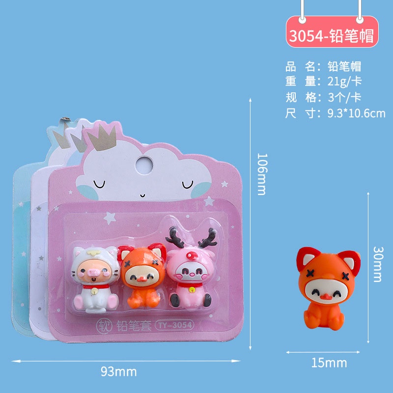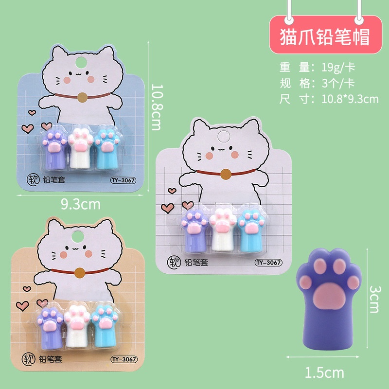 3Pcs Set Cartoon Pen Cap Cat Claw Creative Pencil Pen Cap Pupils Pen Cover Kindergarten Pencil Case Protective Cover