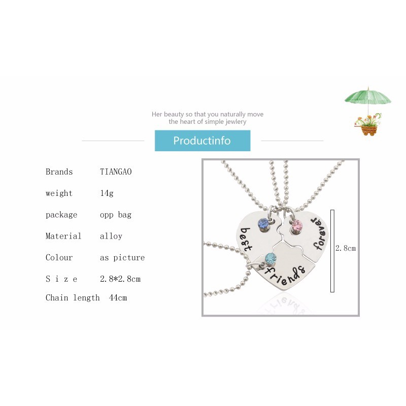 3Pcs/Set Letters Best Friends Forever Friendship Necklace Colors Rhinestone BFF Friendships Chokers