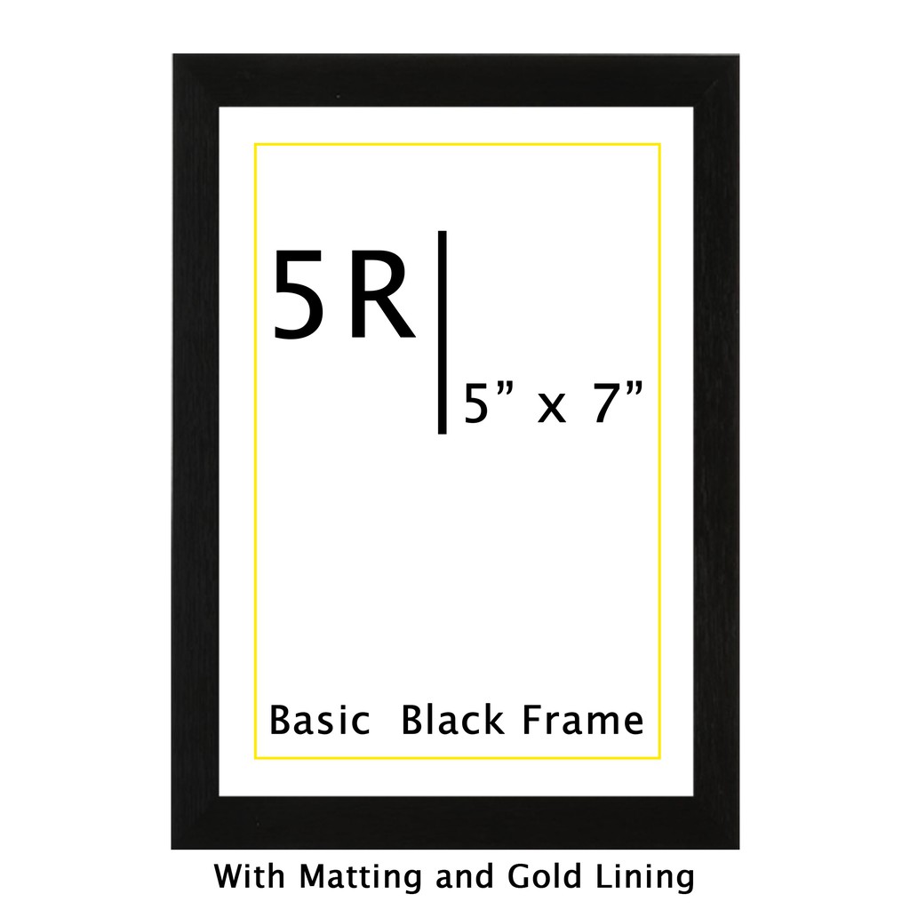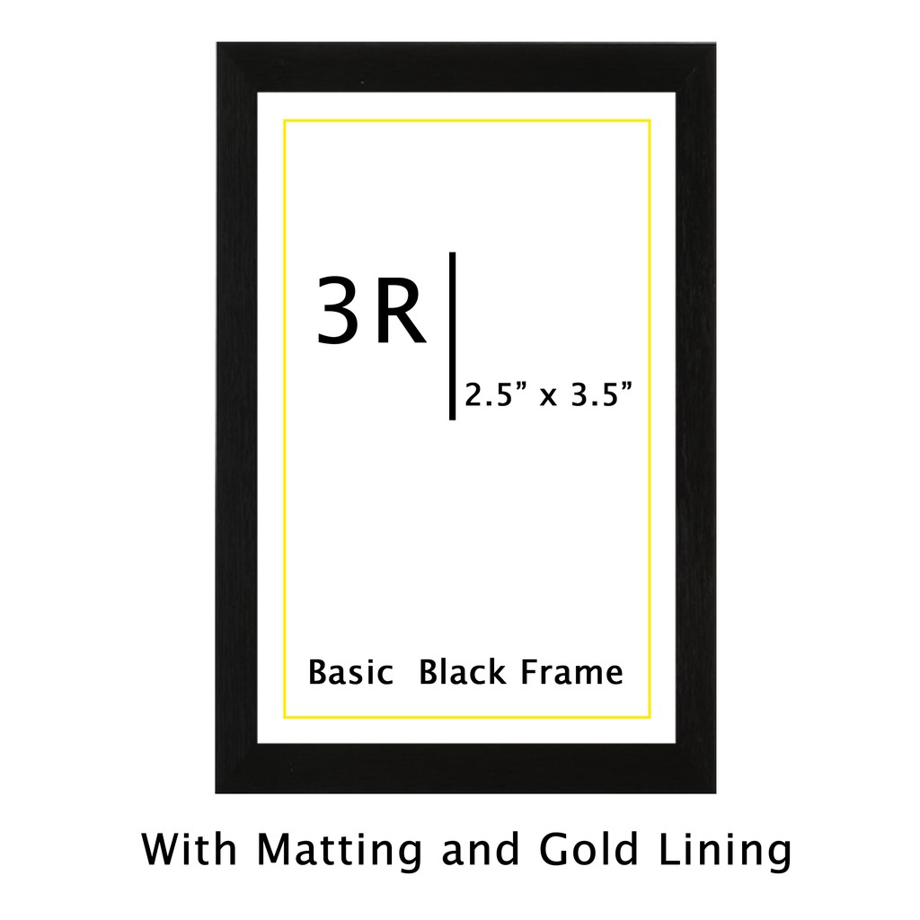 3R, 4R, 5R Picture Frame - Black (w/ Matting and Gold Lining) - for Portrait and Landscape Pictures