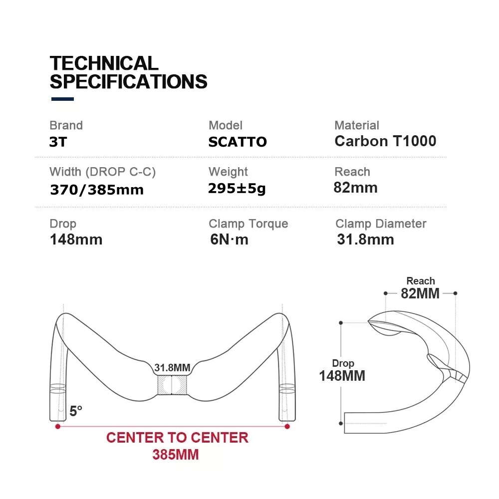3T Cycling SCATTO LTD Track bar Full Carbon Road Handlebar Gloss 31.8mm,370mm,385mm,Track Sprinter's Bar