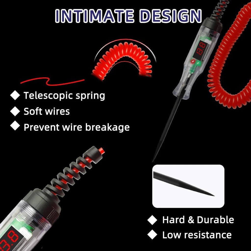 3V-120V DC LED Car Truck Voltage Circuit Tester Digital Display Long Probe Light Electric Tester Pen