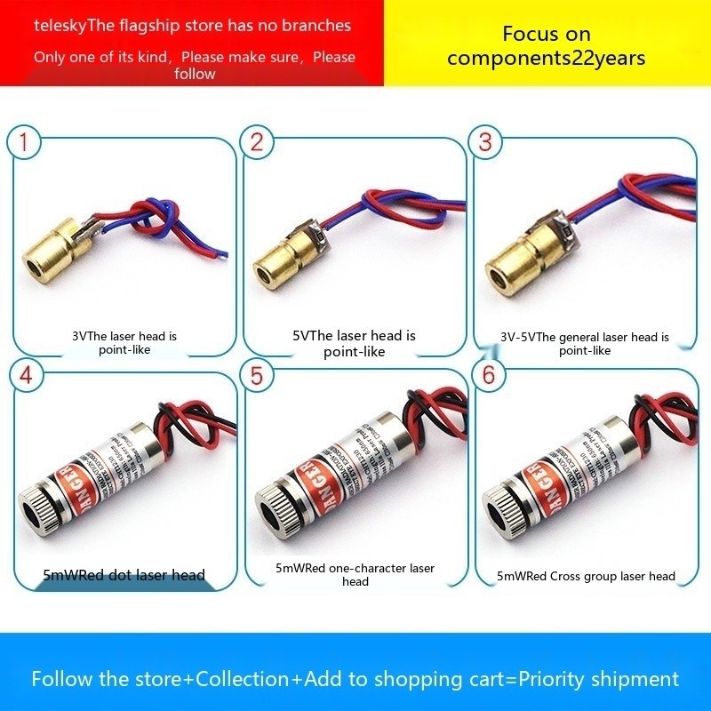 3V5V laser head laser diode 5mW red dot-shaped group of copper semiconductor laser tube 6MM outer di
