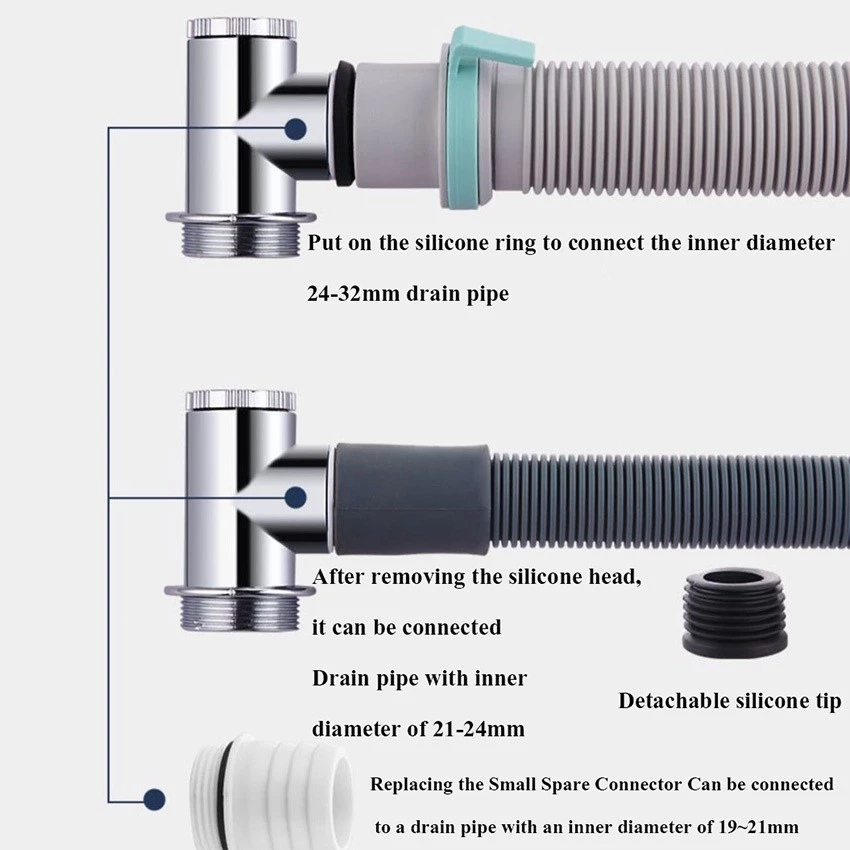 3Way Floor Drain Adapter Washing Machine Hose Tee Joint Anti Smell Anti Odor Prevent Backflow Sewer
