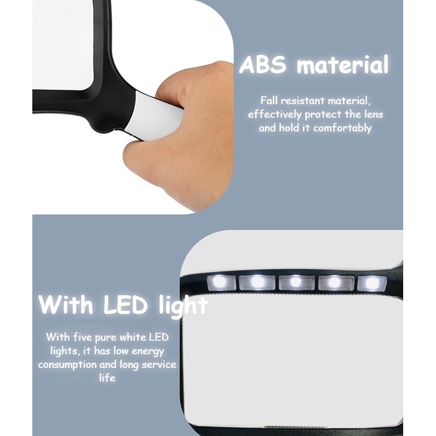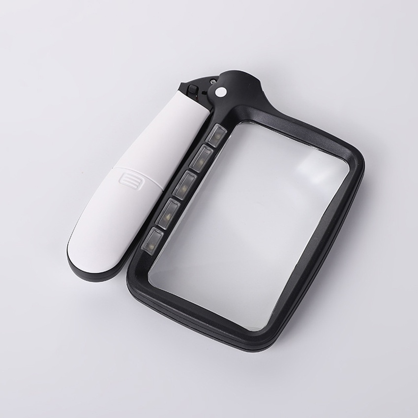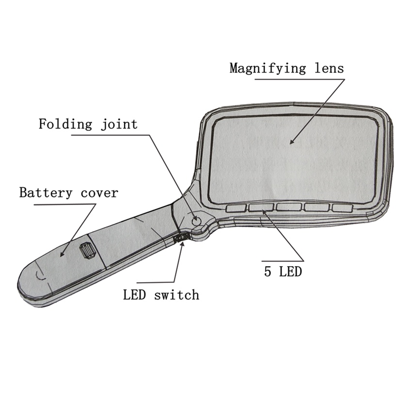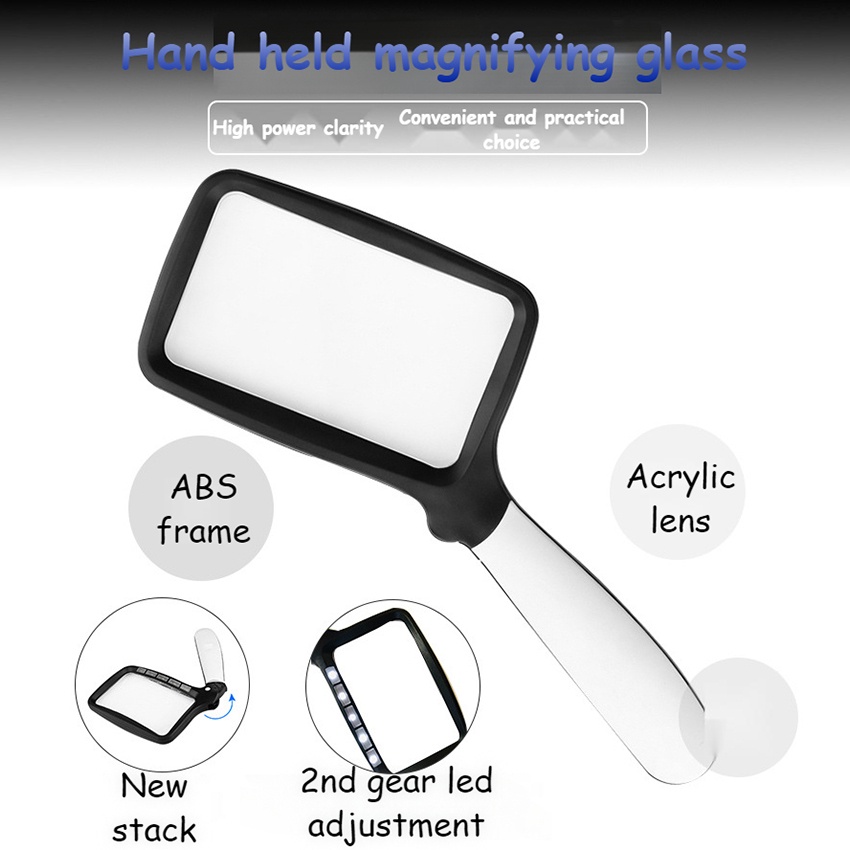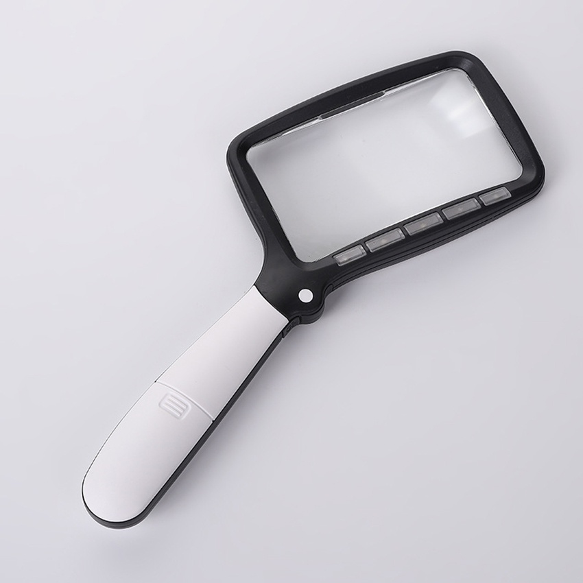 3X Handheld Folding Reading Magnifier With 5 LED Light Square Magnifying Glass For Jewelry Appraisal