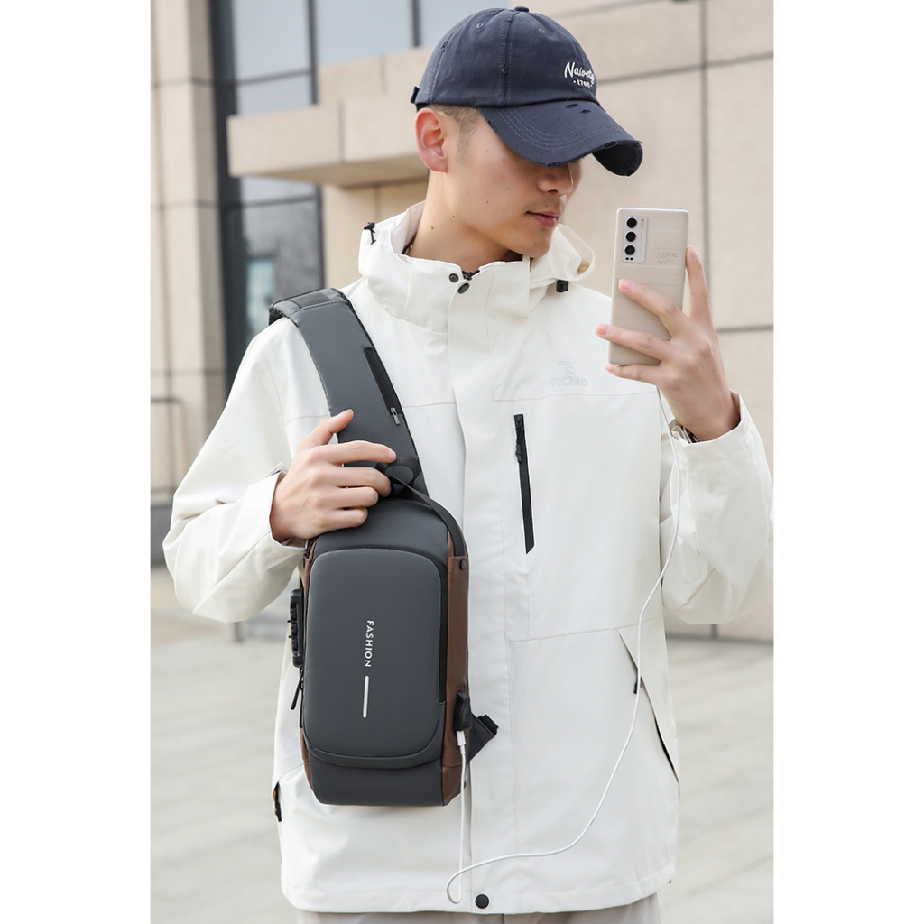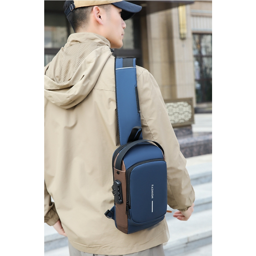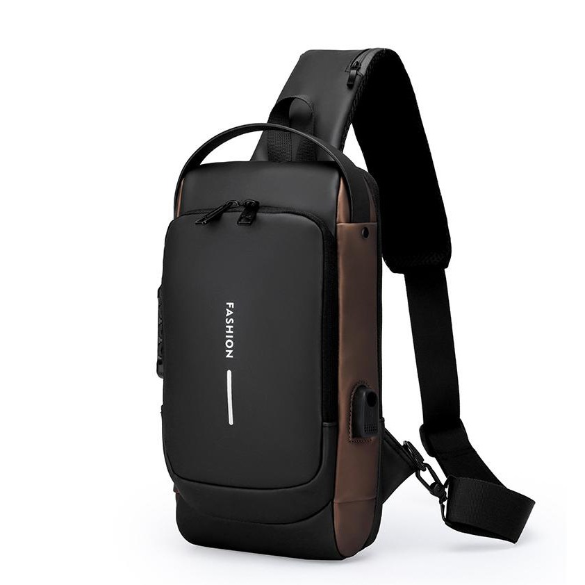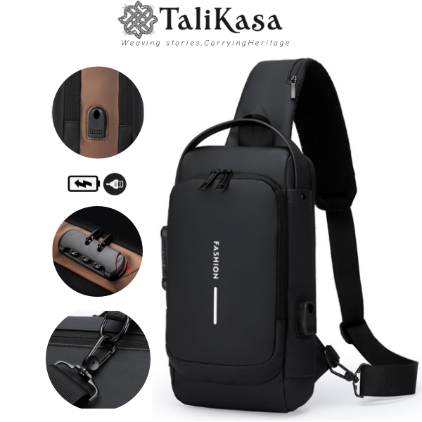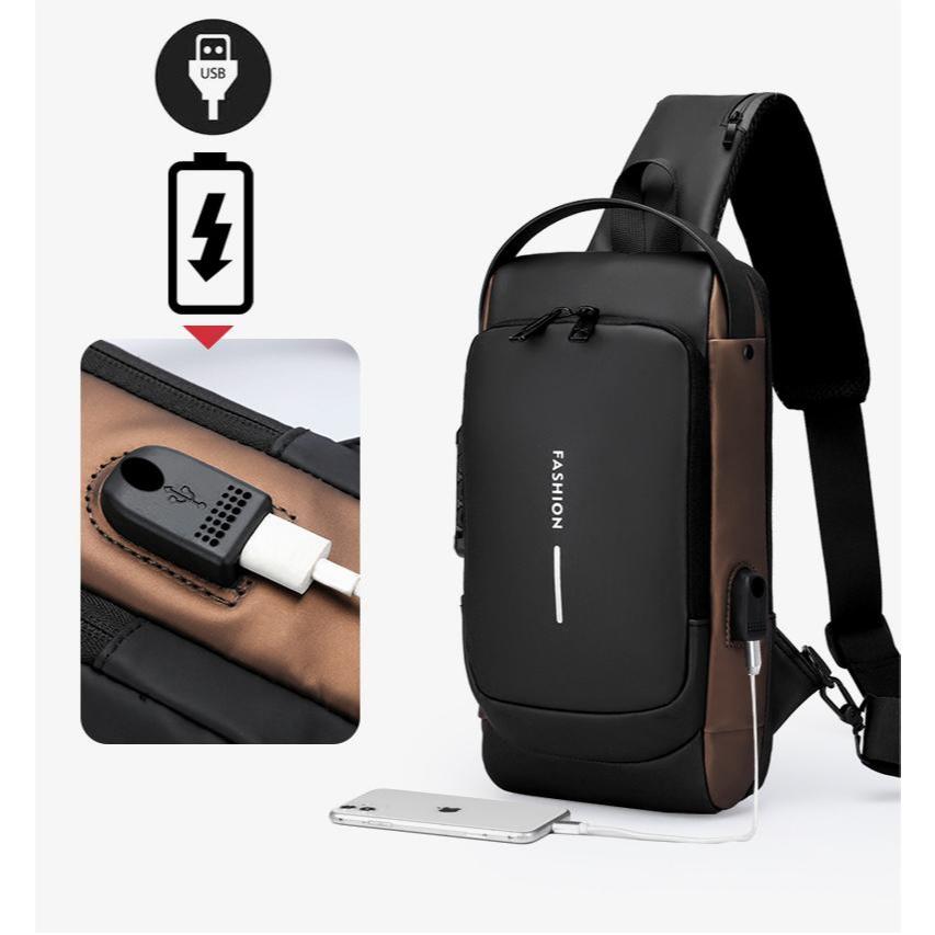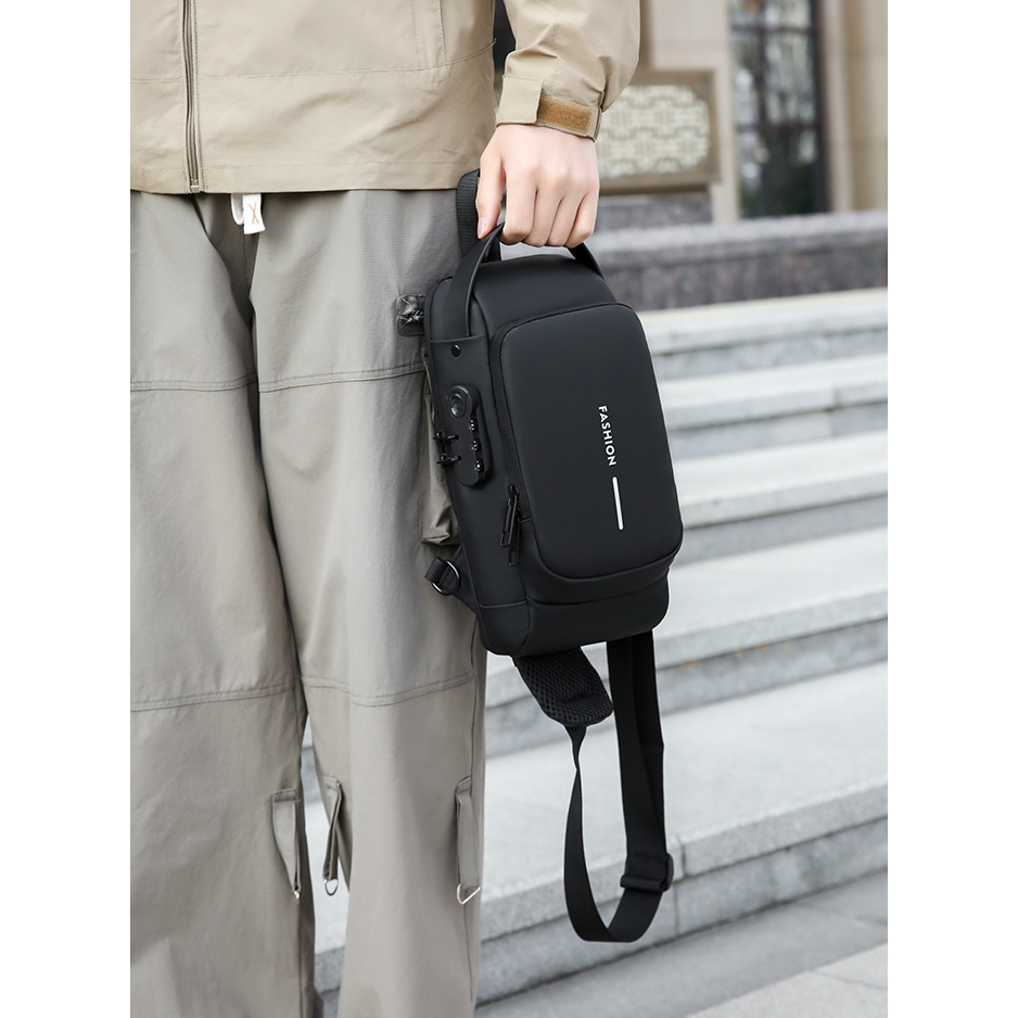 3D Rolling Code Lock Sling Bag Usb-C Fast Charge Travel Bag Water-Resistant Chest Bag Secure&Charge