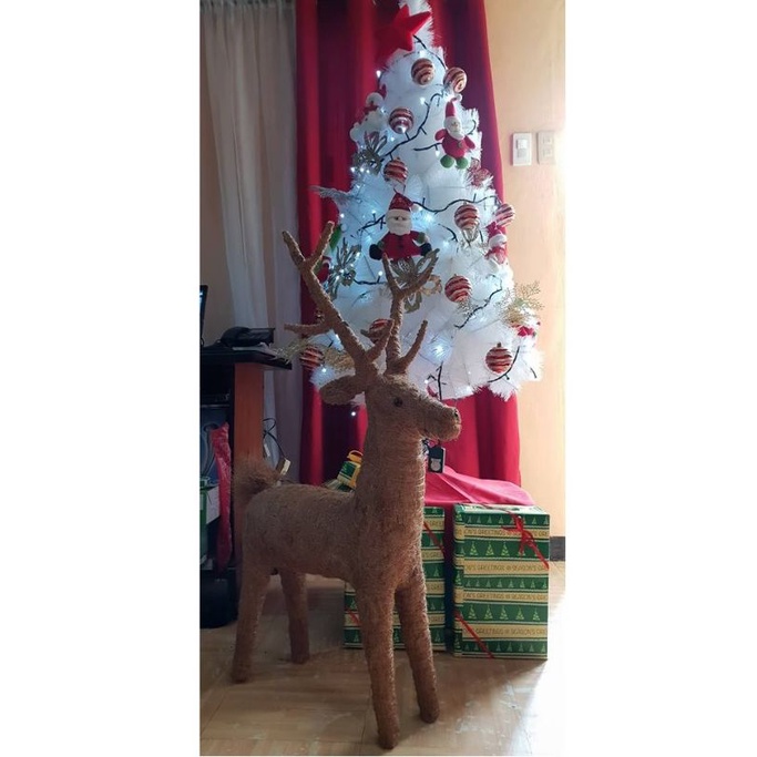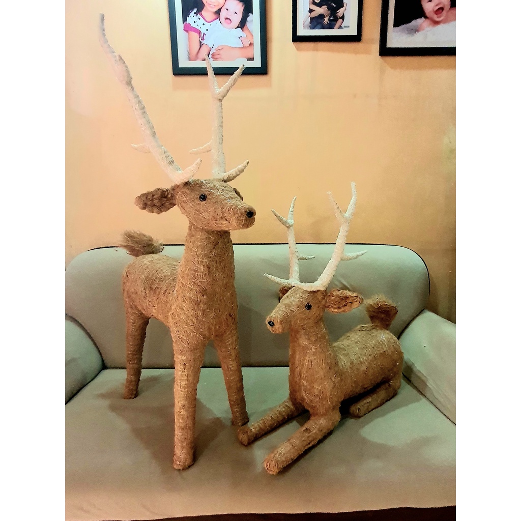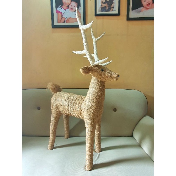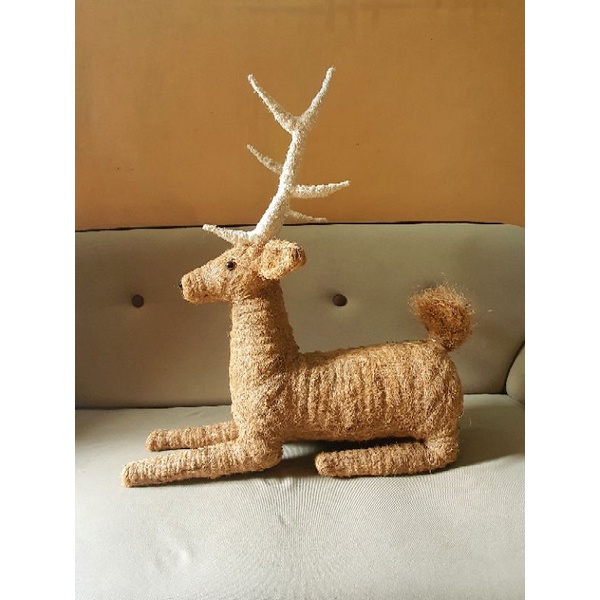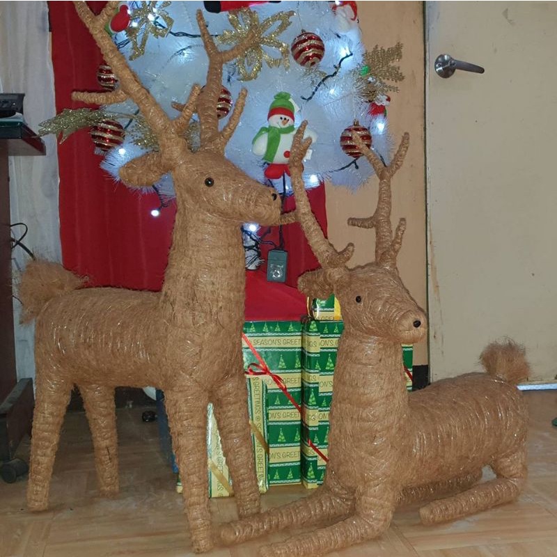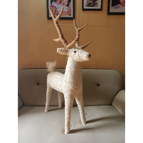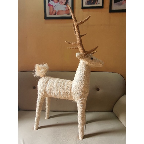 3ft Reindeer Christmas Decoration Abaca Coco Fiber Handicraft Home Decor Indoor Decorative Use