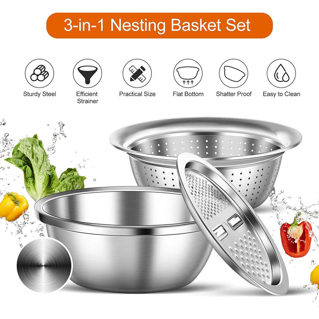 3in1 [26cm] MULTIFUNCTION STAINLESS STEEL BASIN DRAIN BASKET