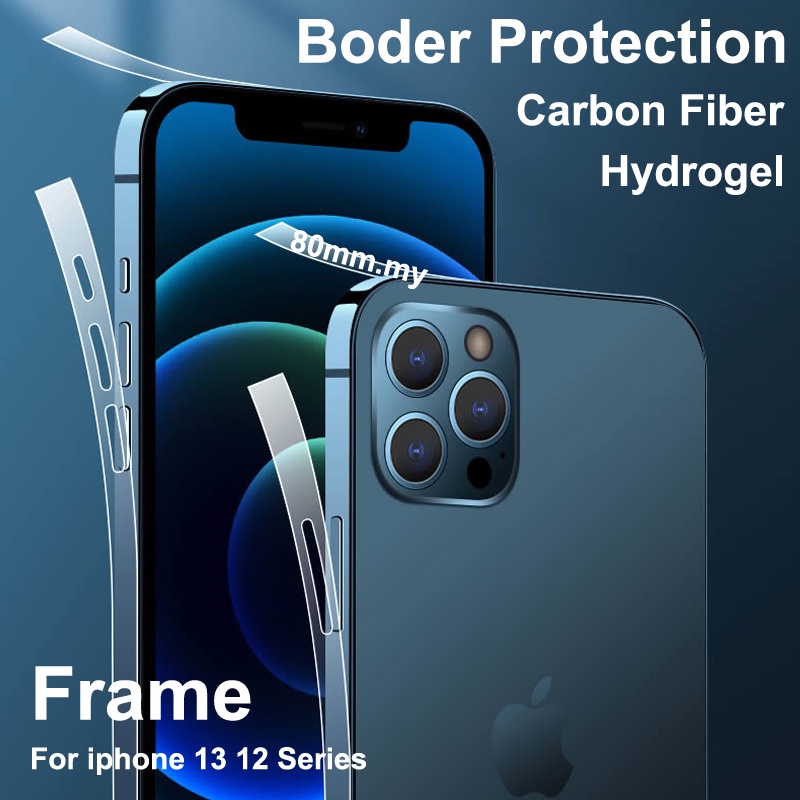 3in1 Back + Frame Border Carbon Fiber Phone Film For iPhone 13 12 Pro Max Mini Protective Hydrogel Film & Lens Camera Protector