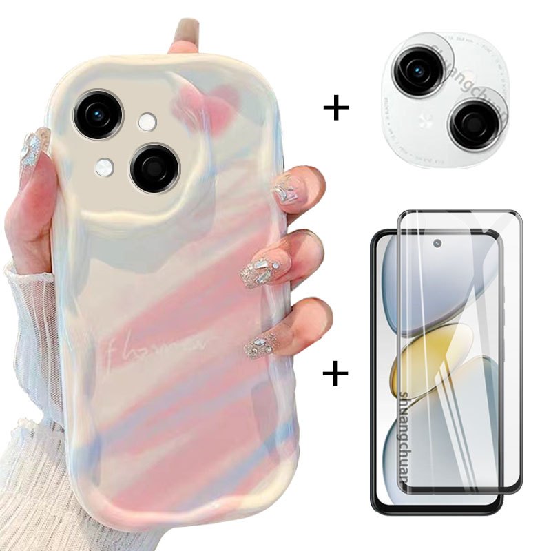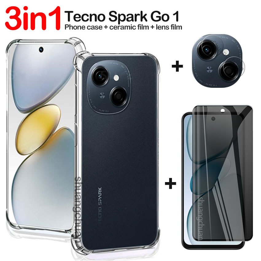 3in1 For Tecno Spark Go 1 phone case POP 9 spark go1 tempered glass Camera lens film Shockproof soft TPU Cover