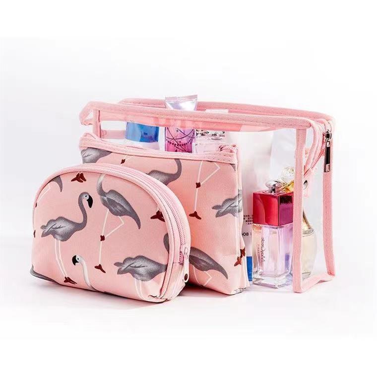 3in1 Transparent Waterproof Cosmetic Pouch Make Up Pouch Bag Flamingo Travel Organizer