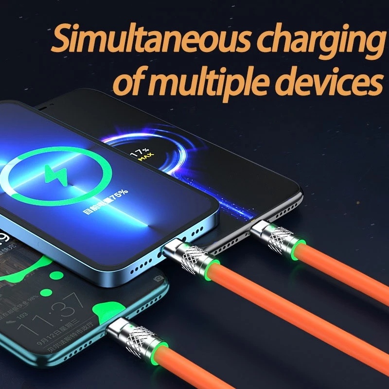 3in1 USB A to USB C 120W Fast Charging Cable Liquid Silicone 8Pin Zinc Alloy Data Cable