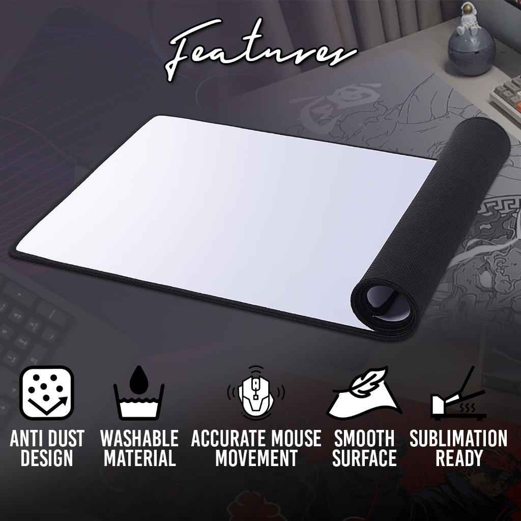 3mm & 5mm Full Sublimation Extended Gaming Mouse Pad Thick Full Color White & Blue or Black Lining