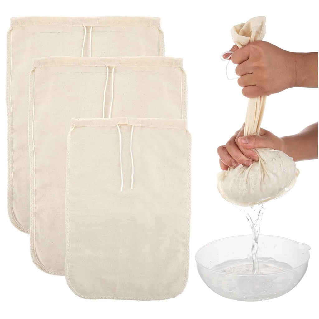 3pc Reusable Cold Beer Brewing Strainers Bags Unbleached Cotton Cheesecloths for Straining Homebrew Cheese Cloth Strainer Filter