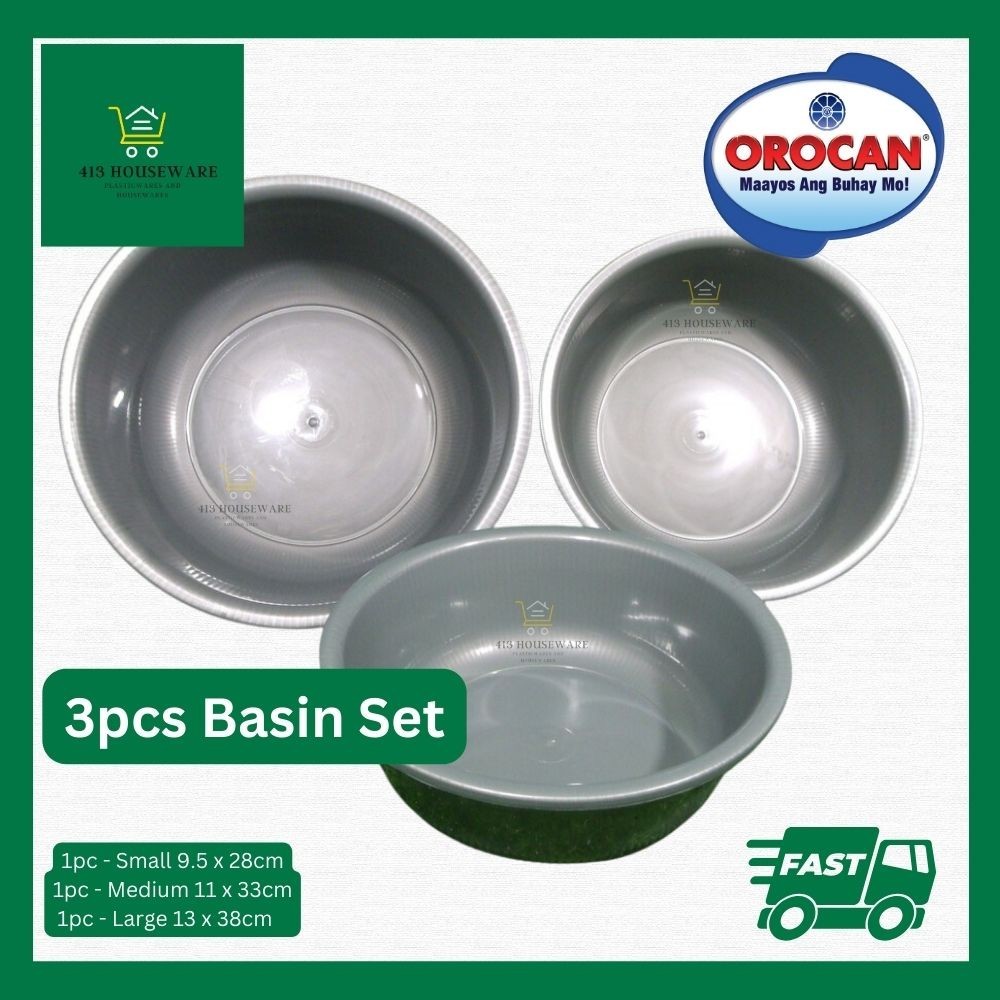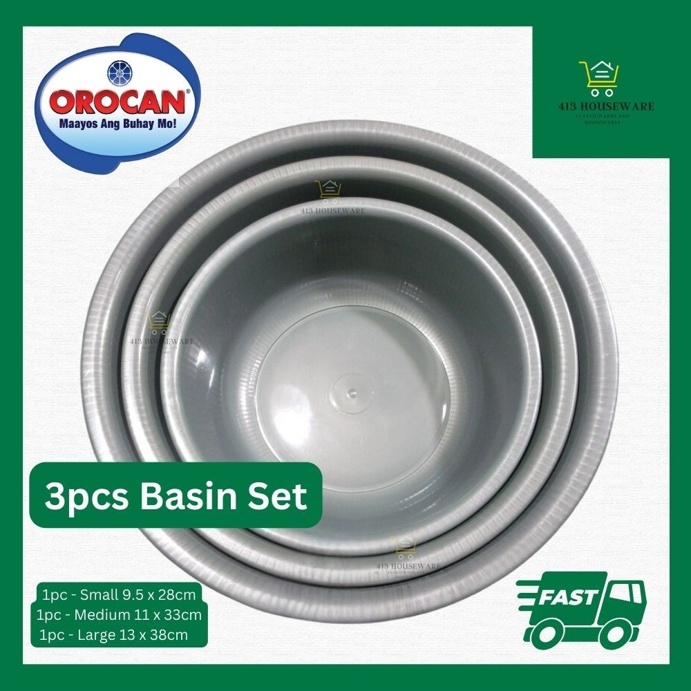 3pcs Basin Orocan Silver Basin Set Multipurpose Heavy Duty Laundry Babaran Tub- Orocan#8581S,82S,83S