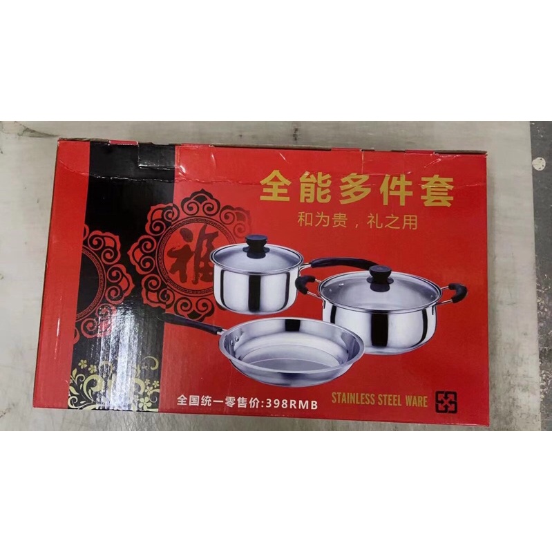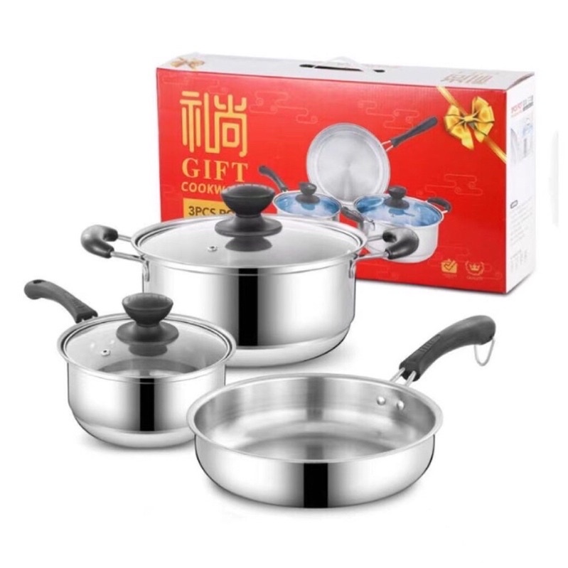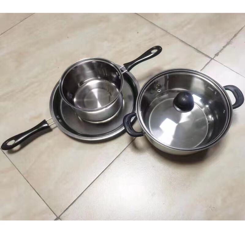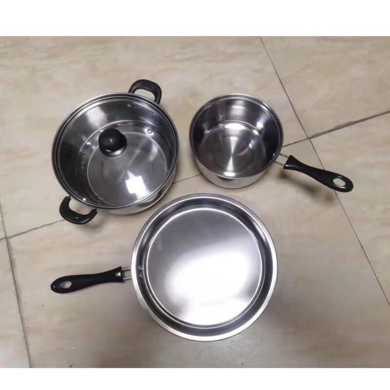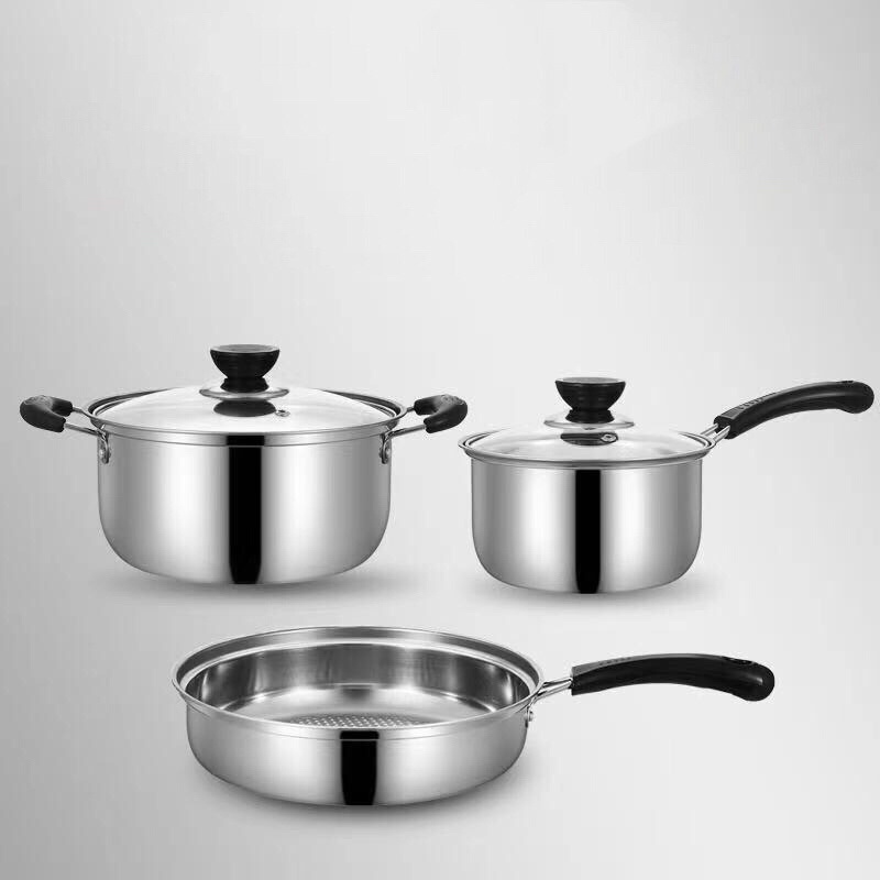 3pcs Cookware Kitchen Stainless Steel Soup Pot Saucepan Induction Safe Thickened Frying Pan D/S-42