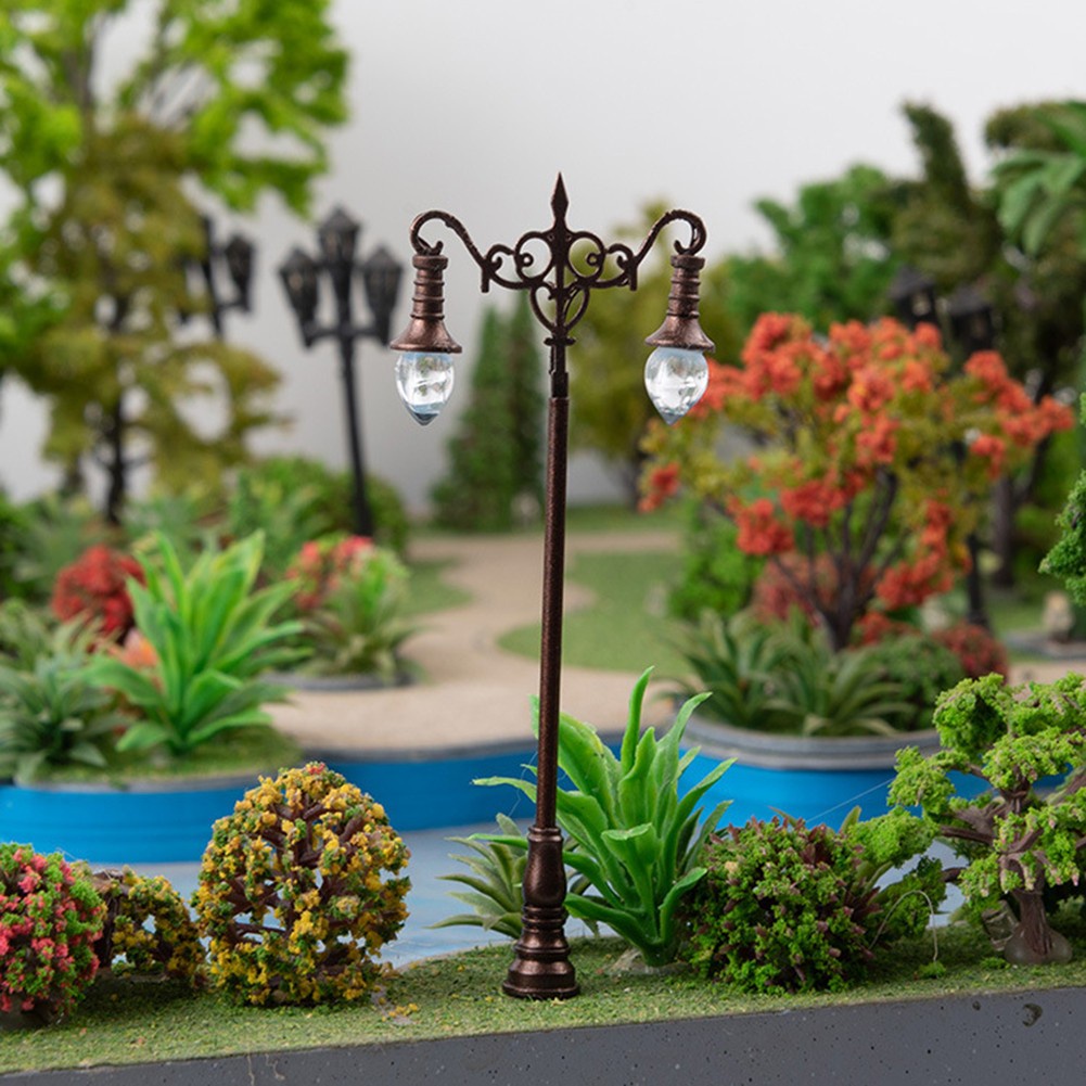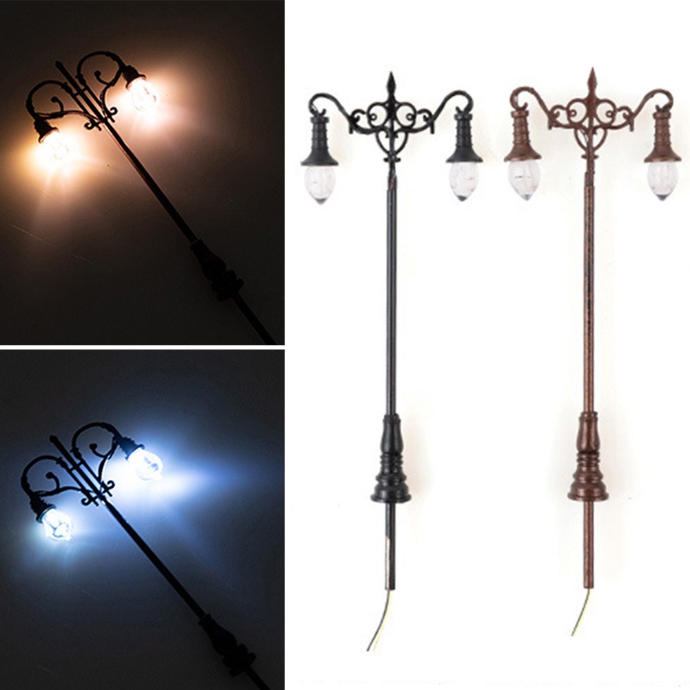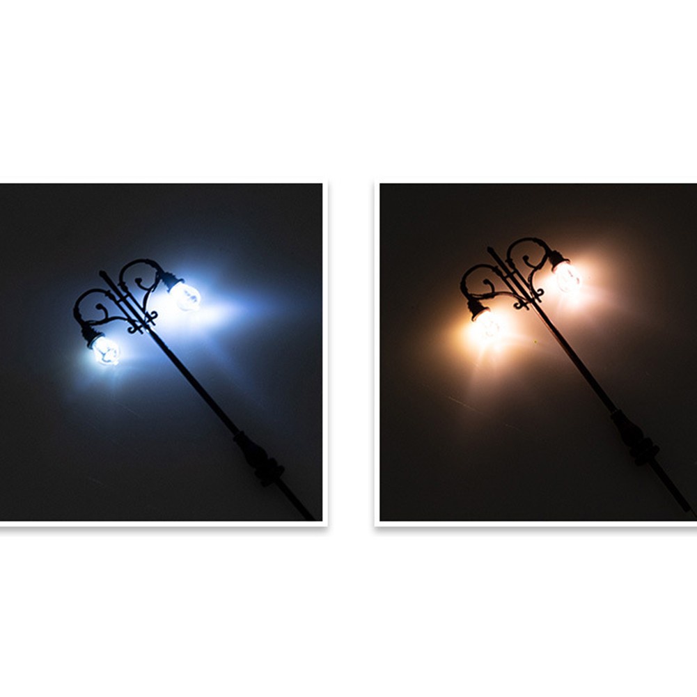 3 Pcs 8cm Double Head Model Railway Street Lights HO OO Scale Warm White LED Train Lamp Posts with Resistors Accessories