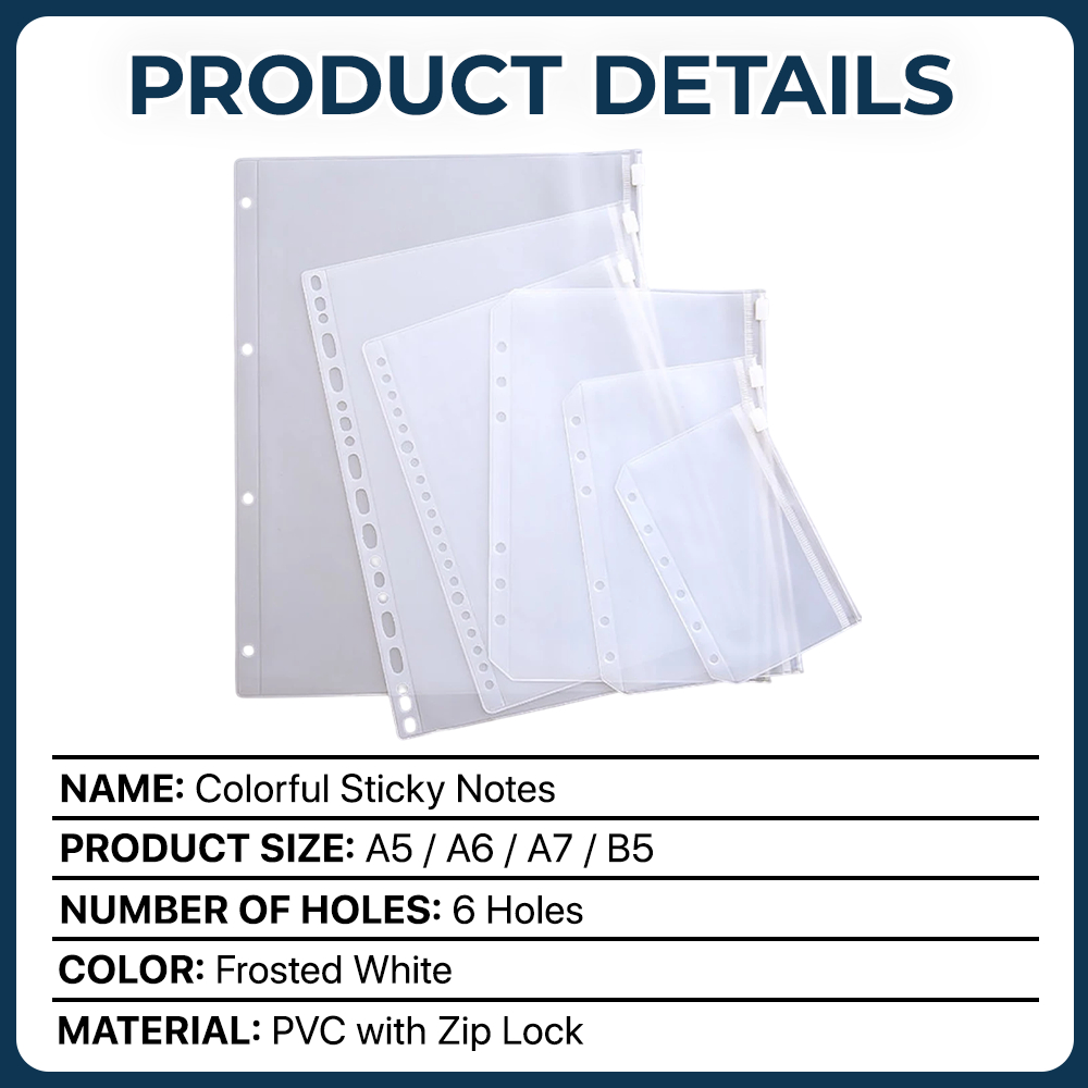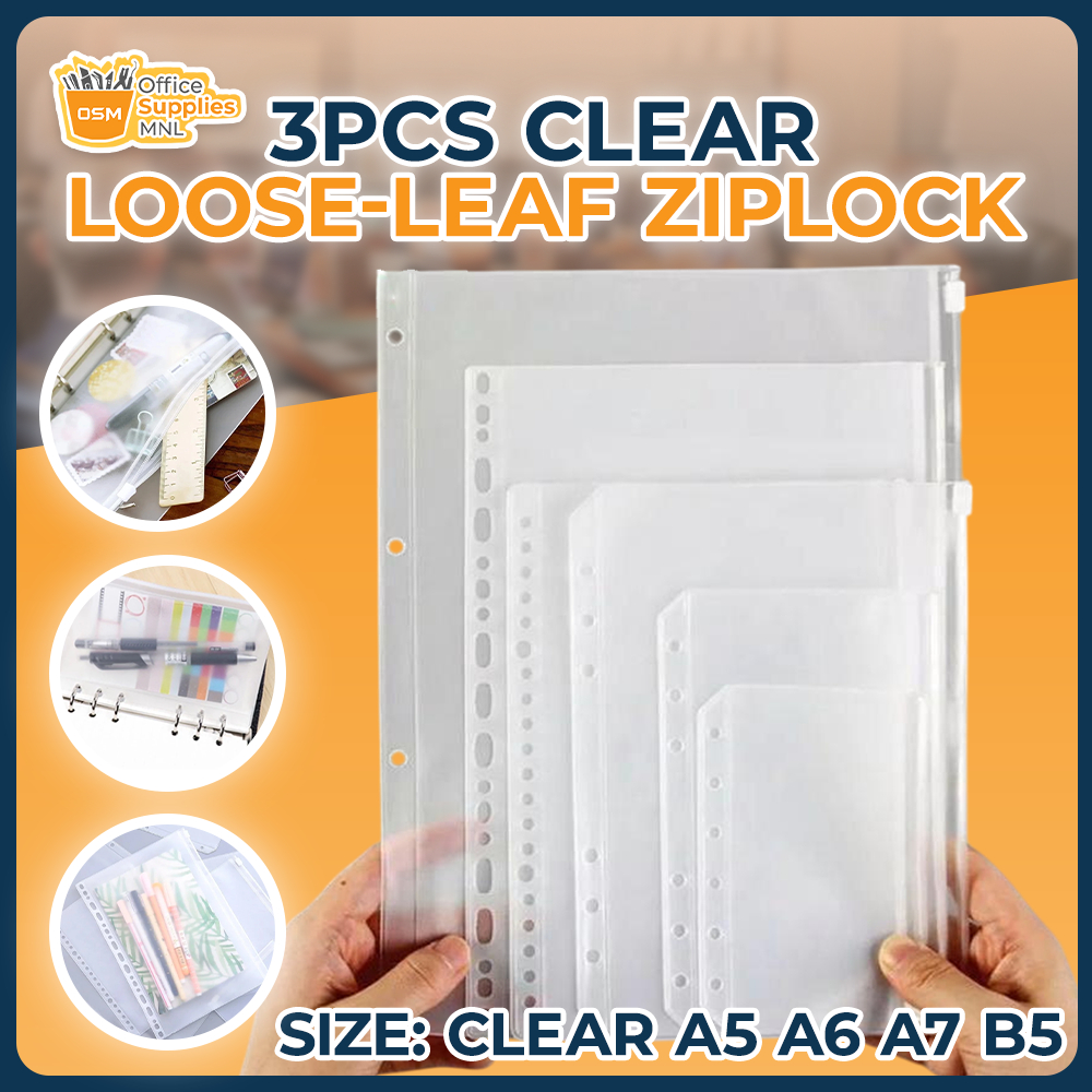 3pcs Loose Leaf Ziplock for Binder A5 A6 A7 B5 Clear PVC Pocket DIY Pouch for Personal Notebook